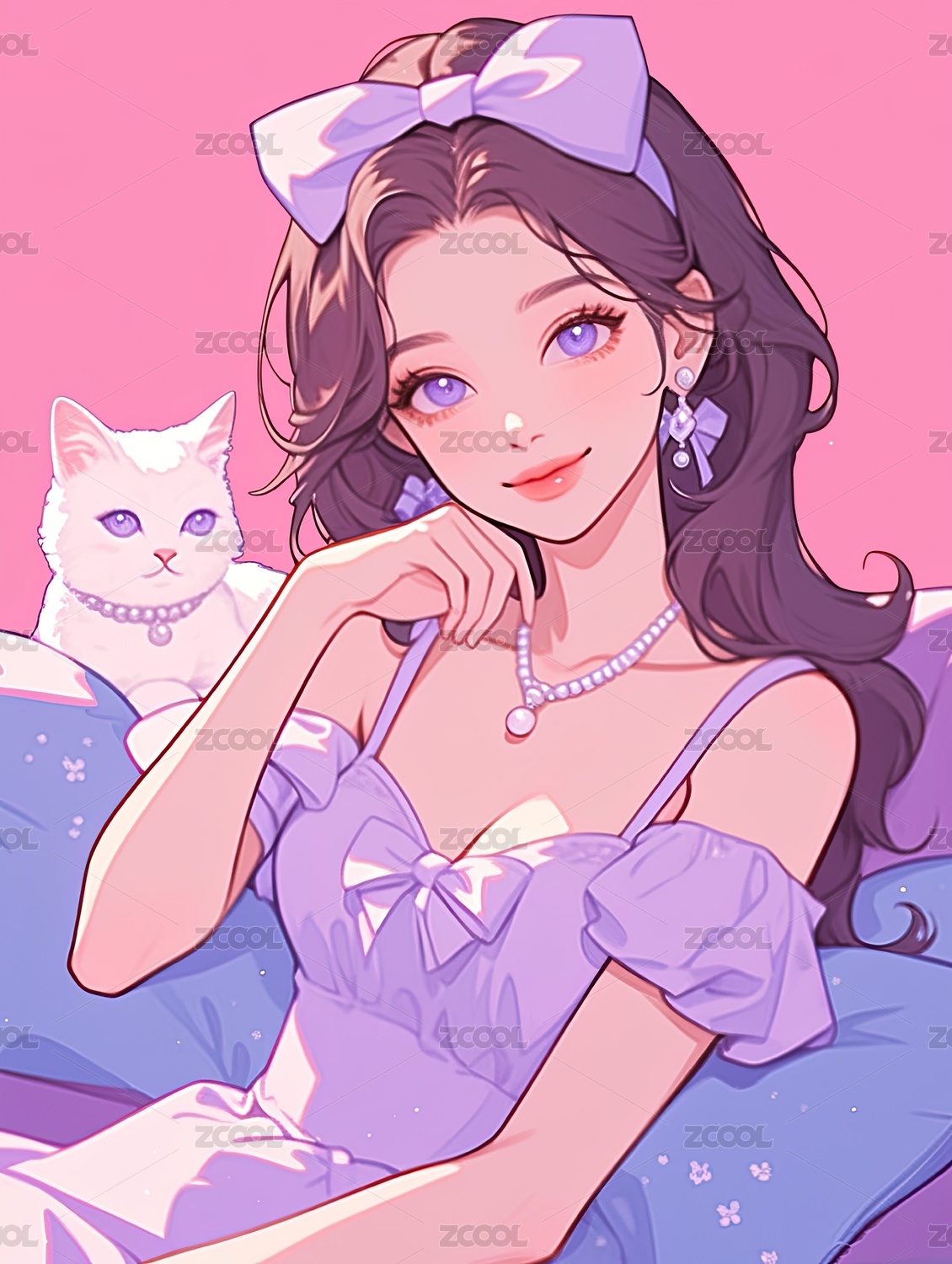 粉色,室内,温馨,治愈,拥抱,卡通,女孩,小狗