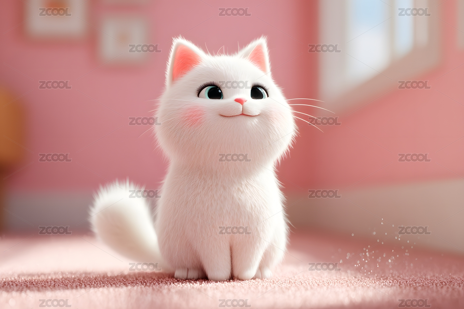 梦幻一只仰着脸的宠物猫3D立体卡通插画