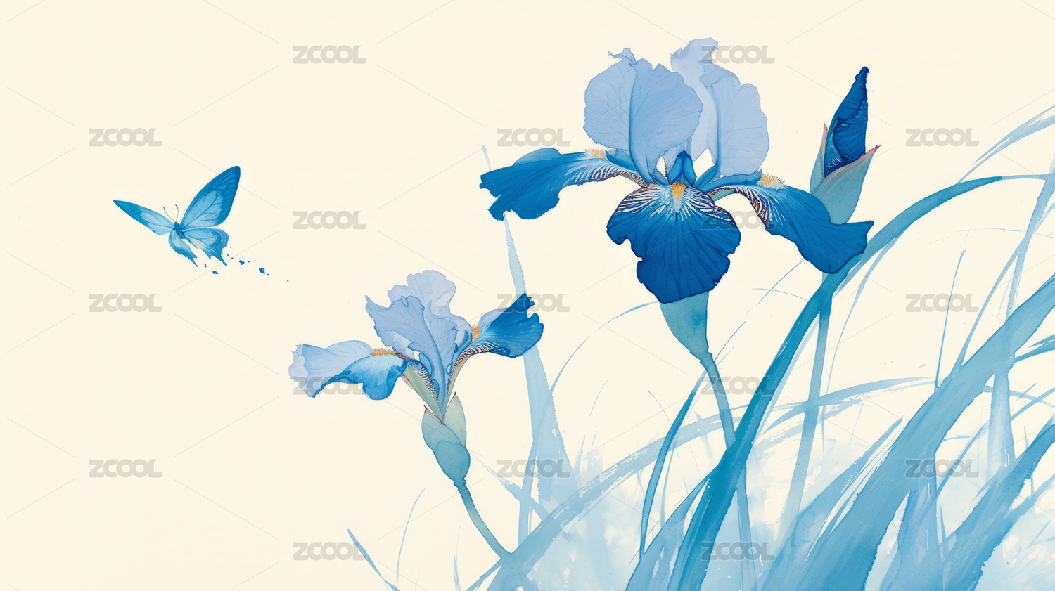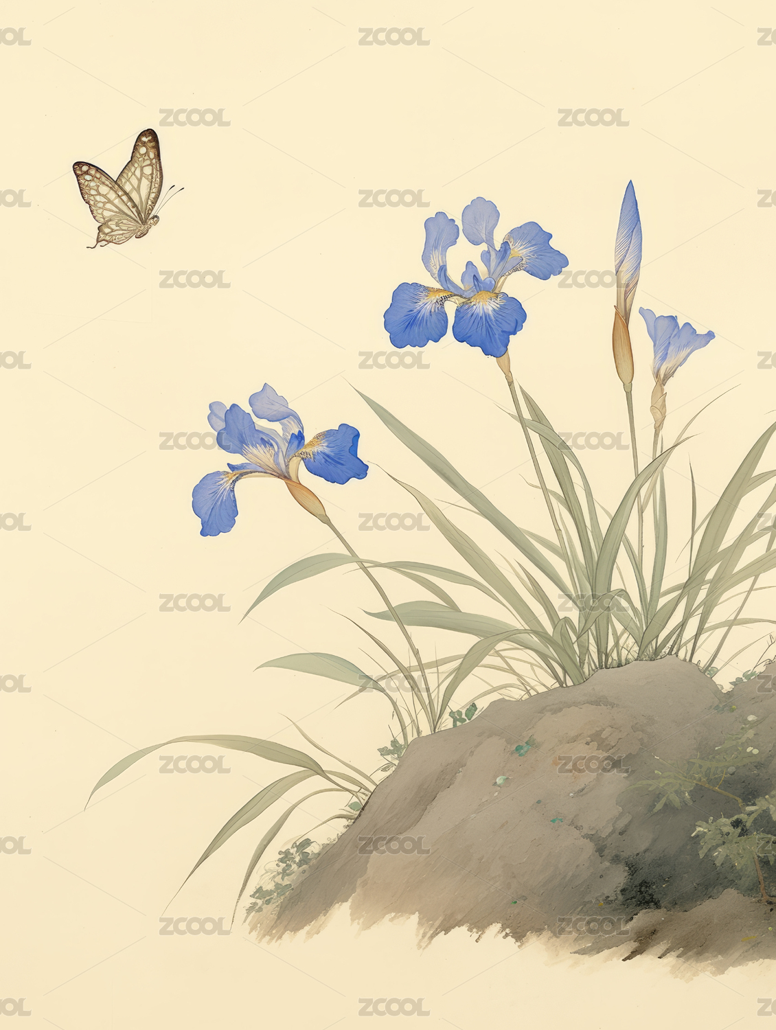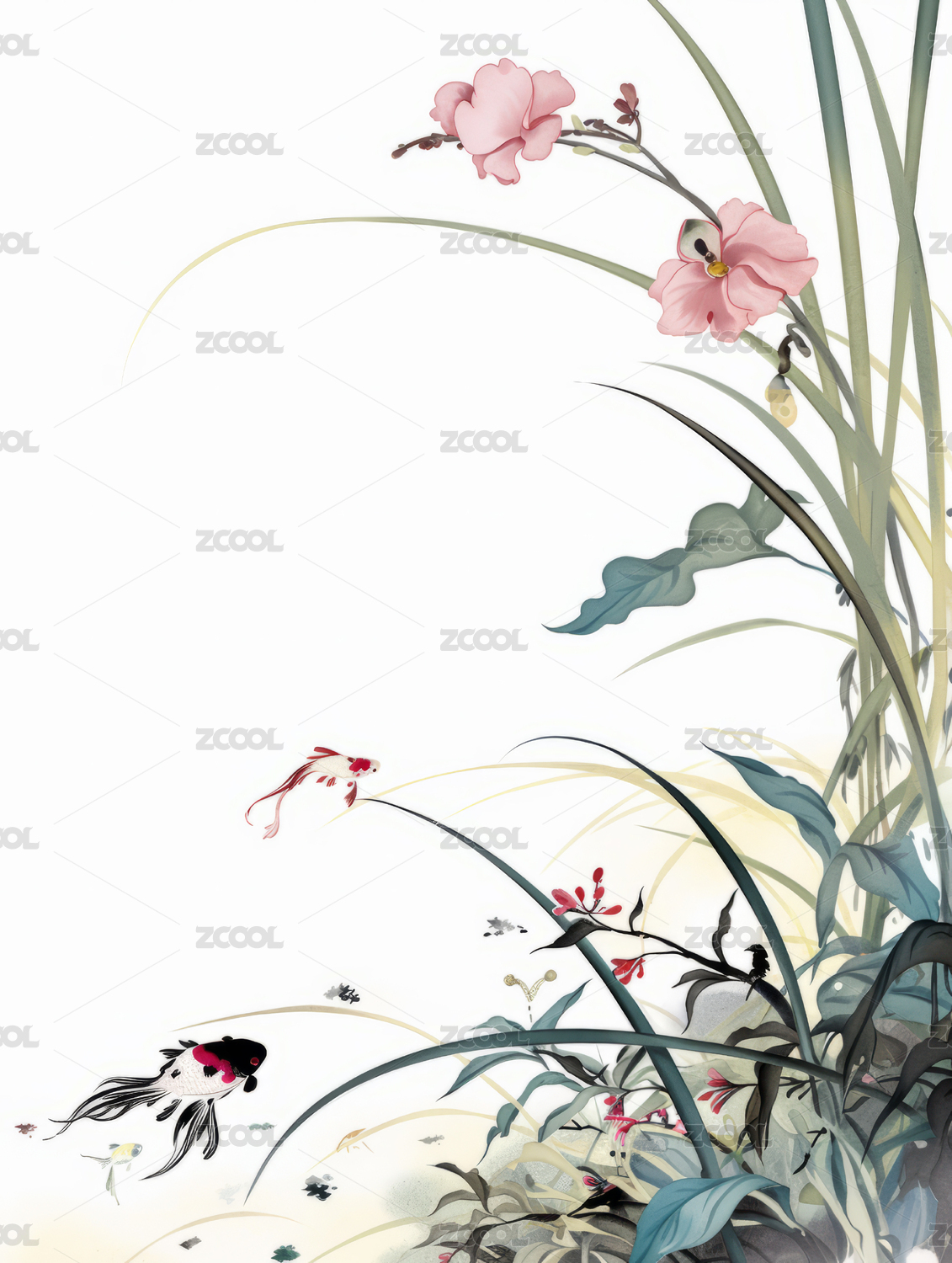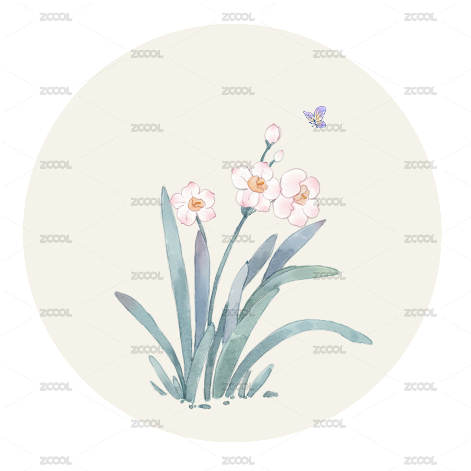 插画,水墨画,中国风,花簇,圆形,装饰画,写意画,国风,兰花,植物