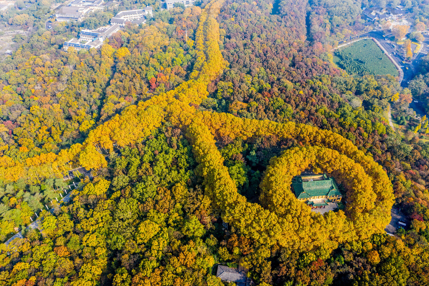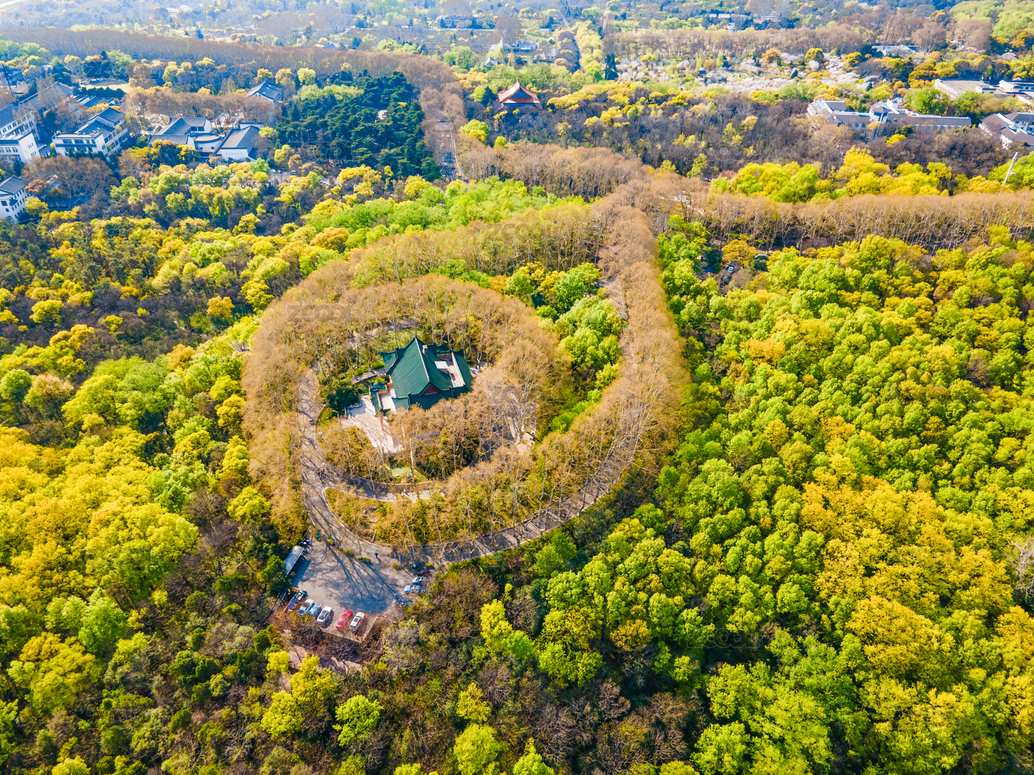 航拍中国江苏南京钟山风景名胜区美龄宫深秋美景