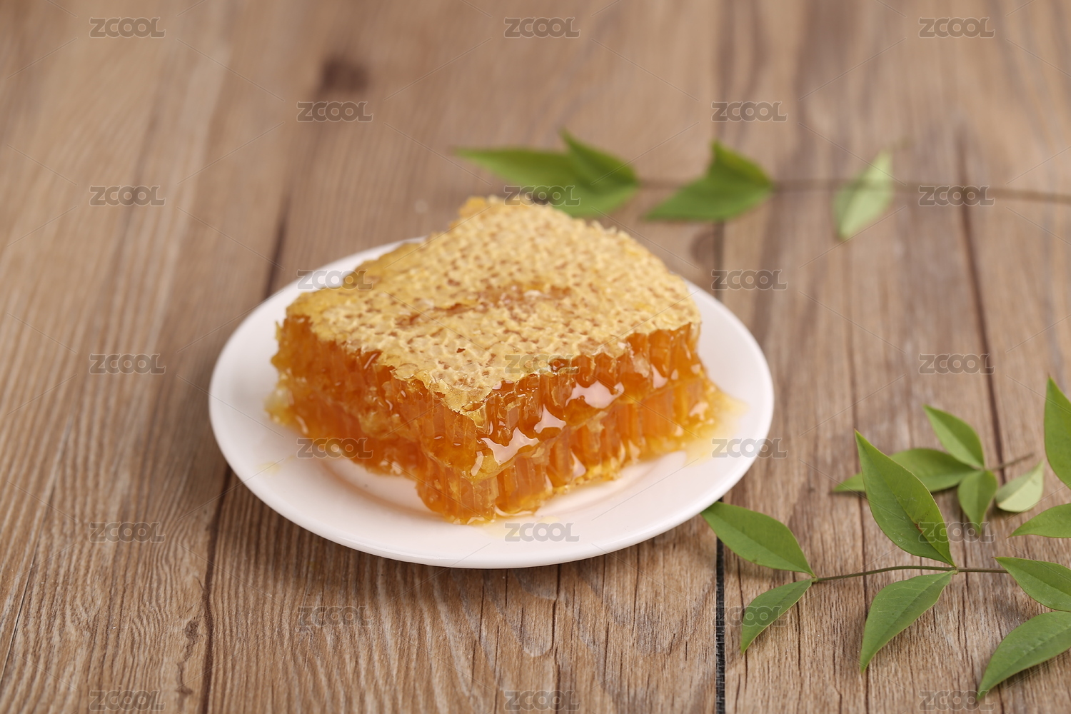 装在白色碟子中的蜂巢蜜