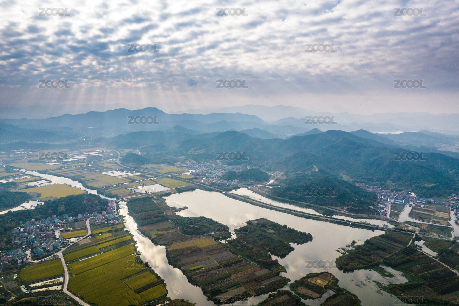 航拍秋日傍晚浙江上虞丁宅乡山村美景