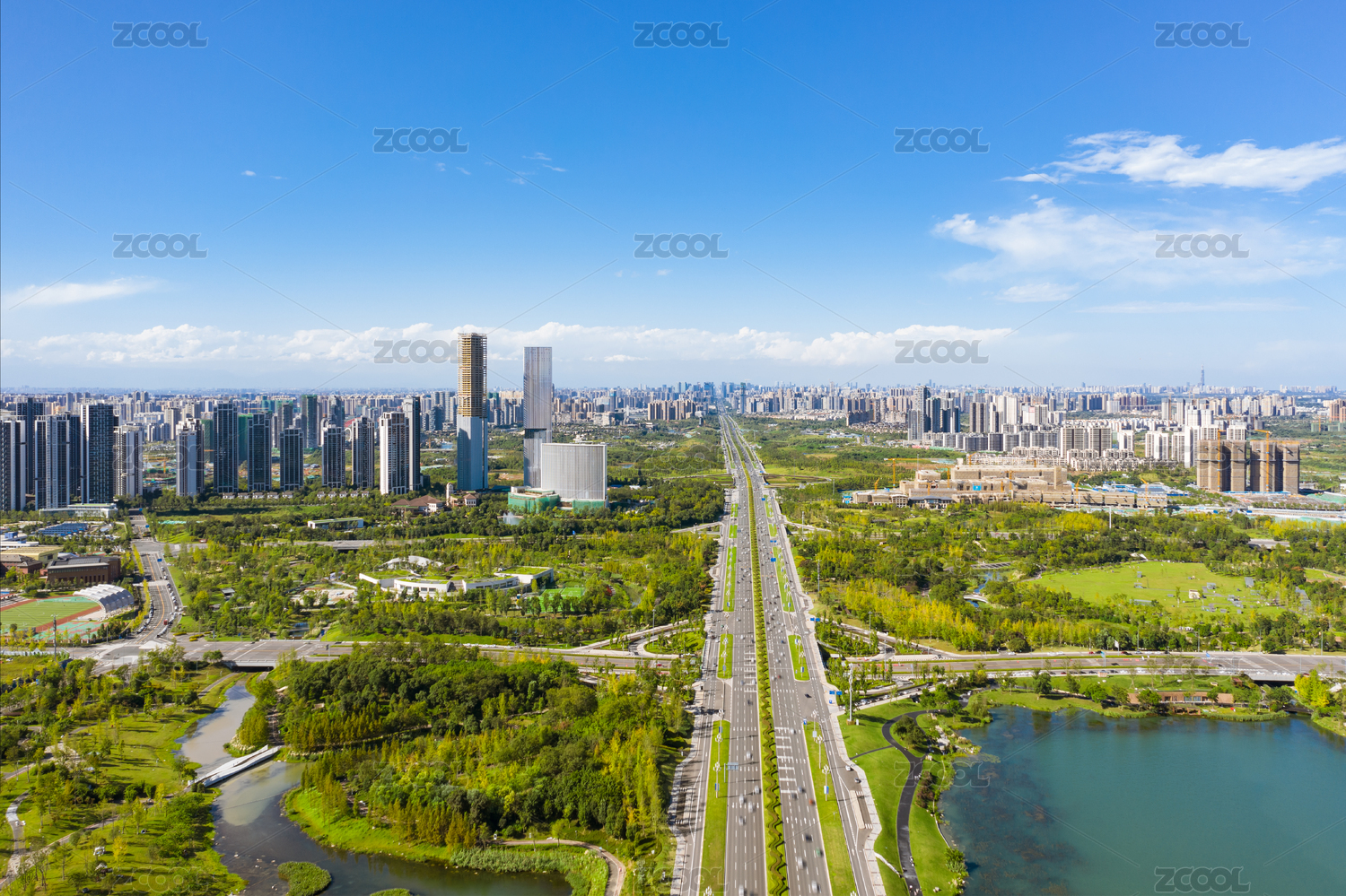 成都白鹭湾湿地公园和城市绿道白昼航拍