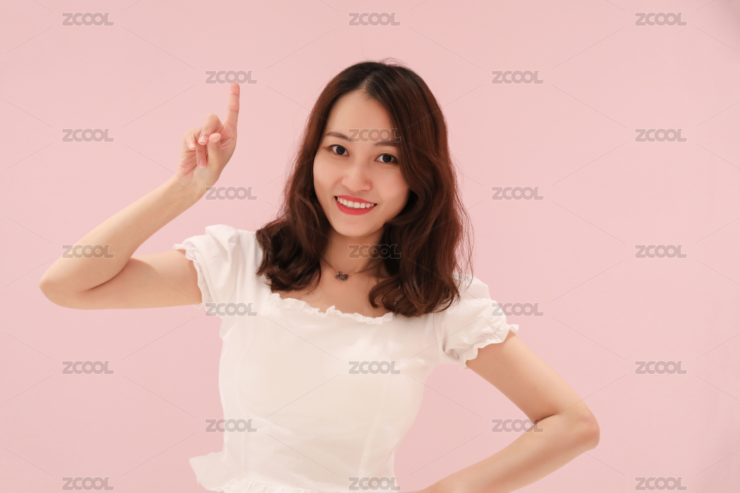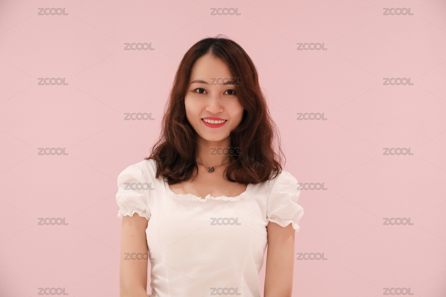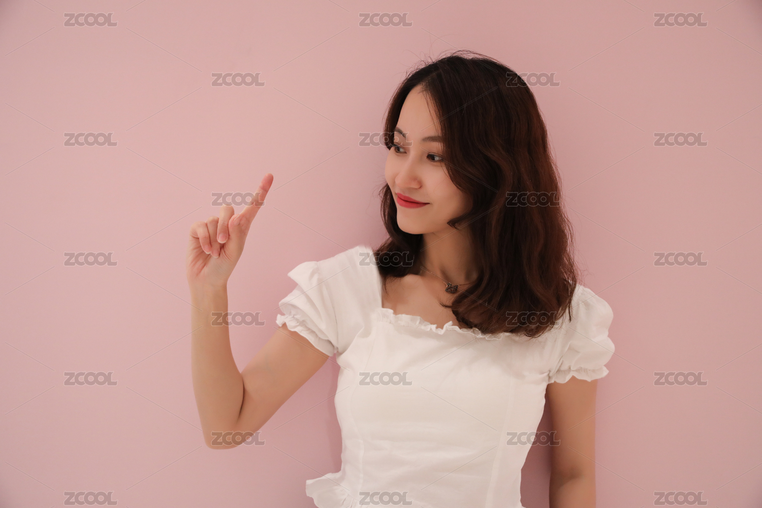 T恤衫,头发,美女,女人,服装,女孩,粉,室内,纯色,背景