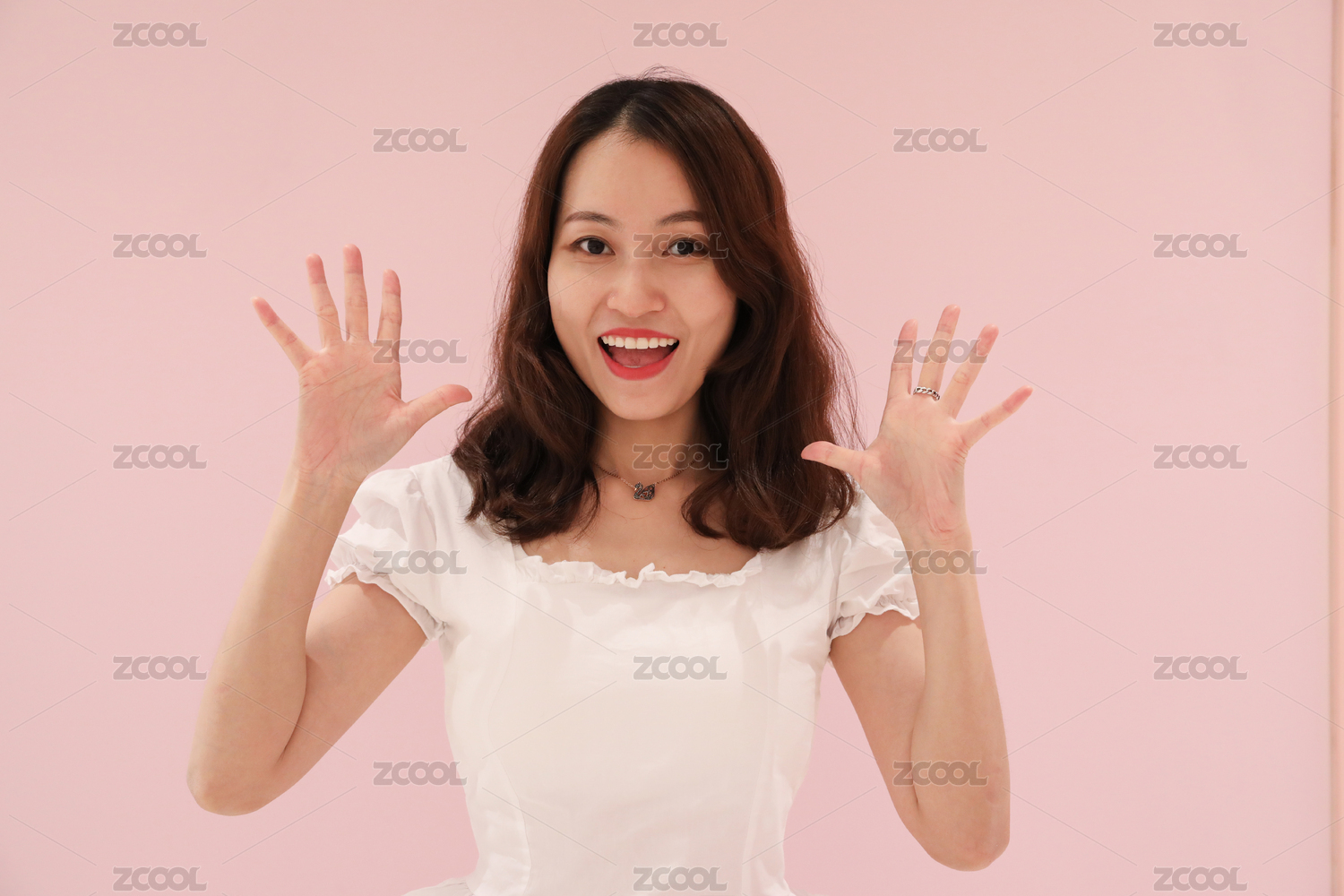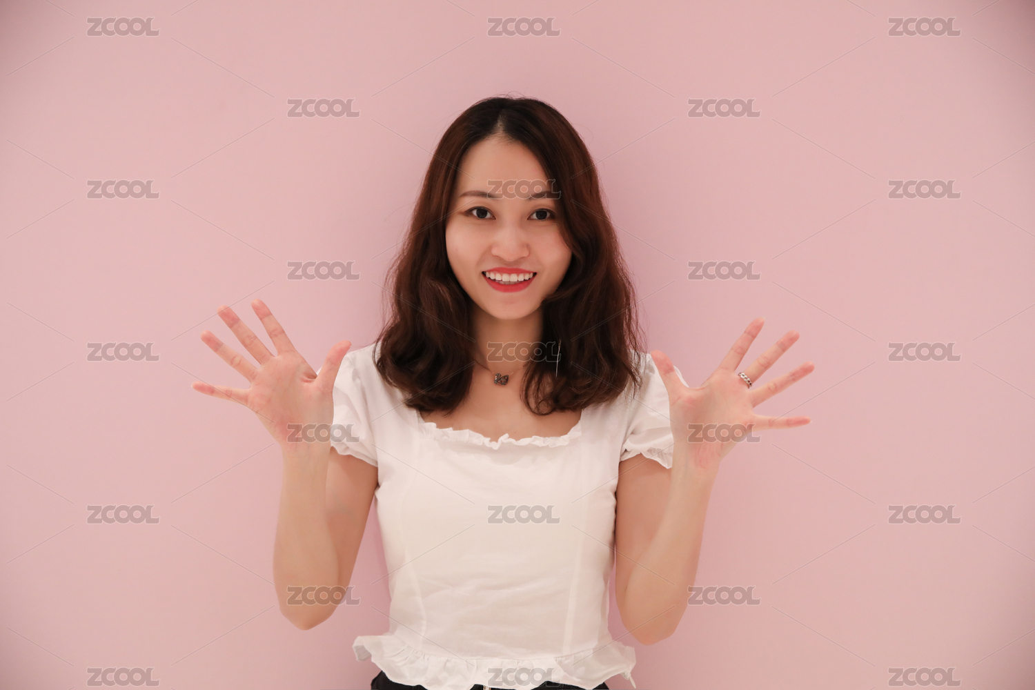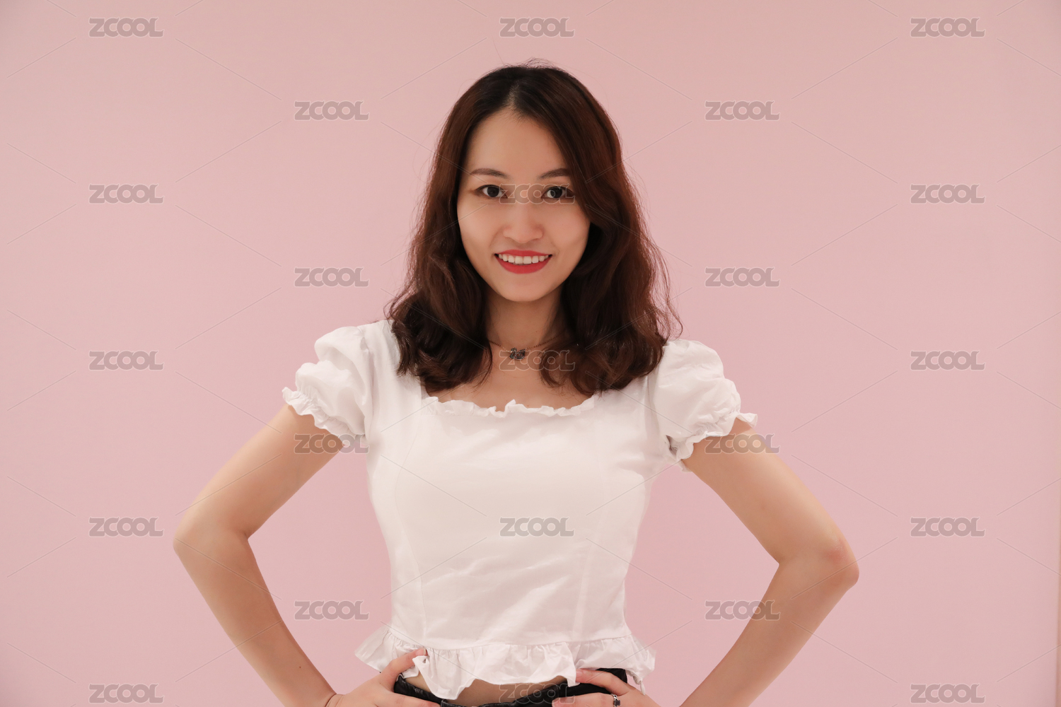 T恤衫,头发,美女,女人,服装,女孩,粉,室内,纯色,背景