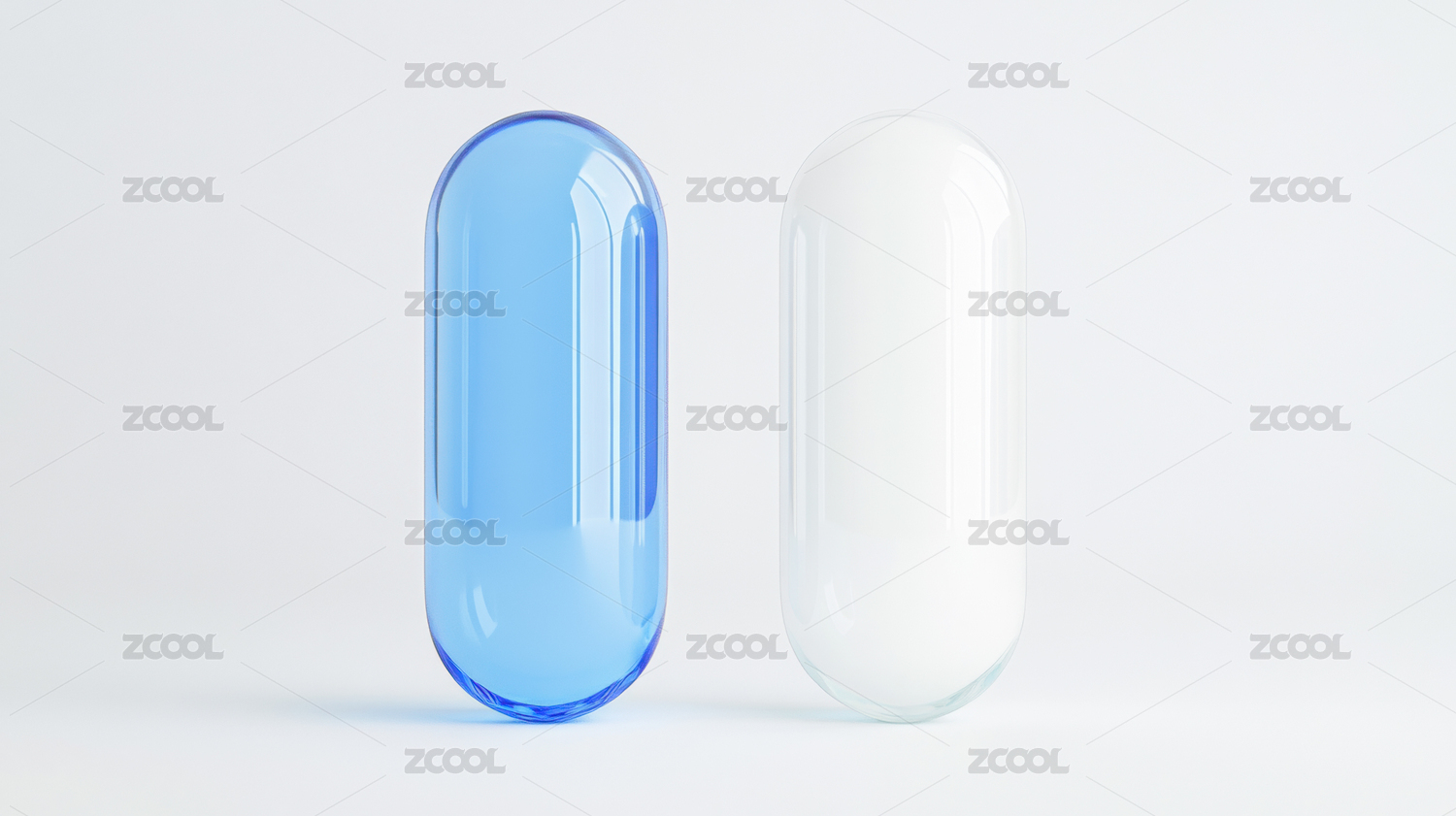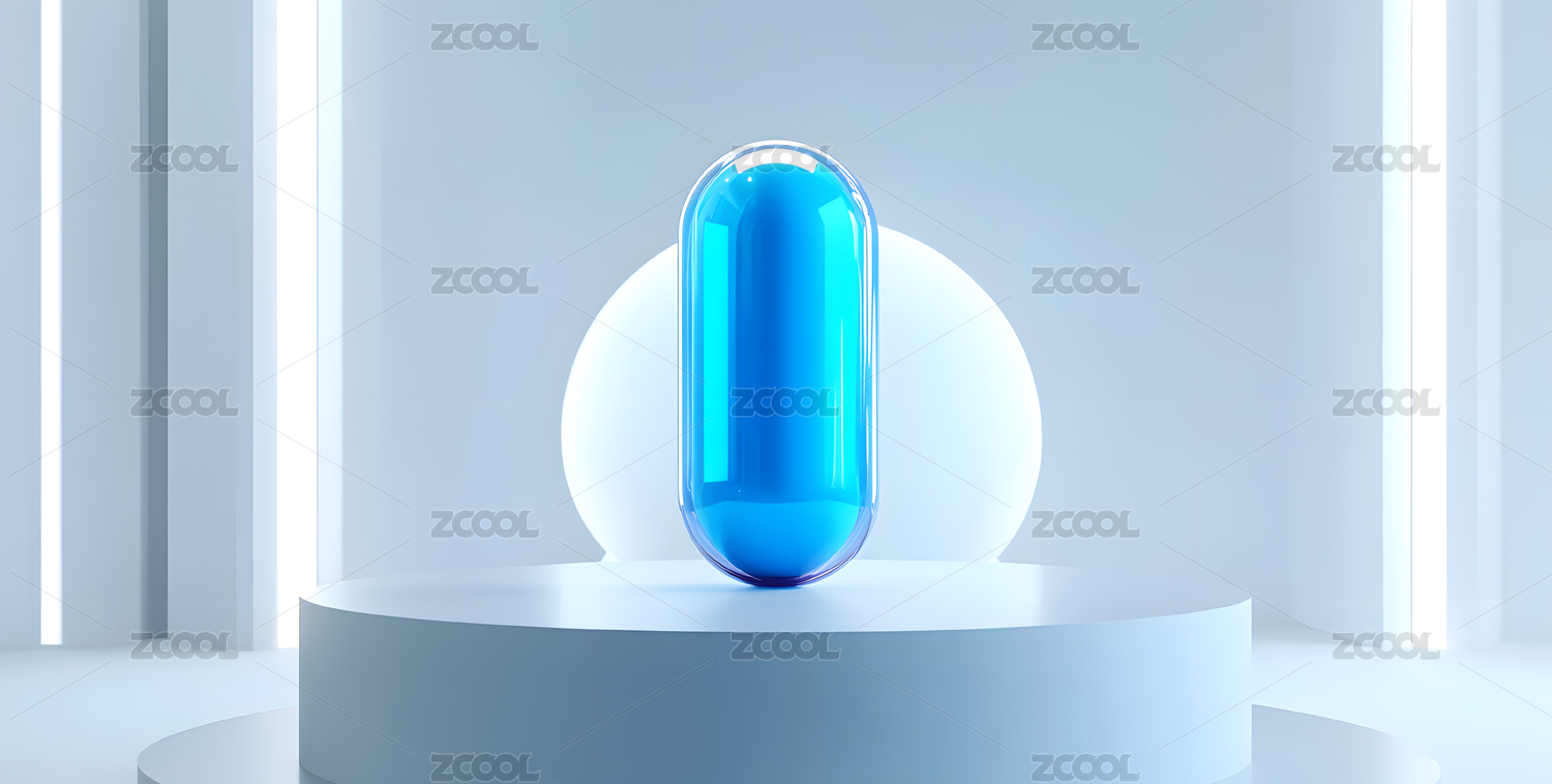 蓝色胶囊置于白色平台