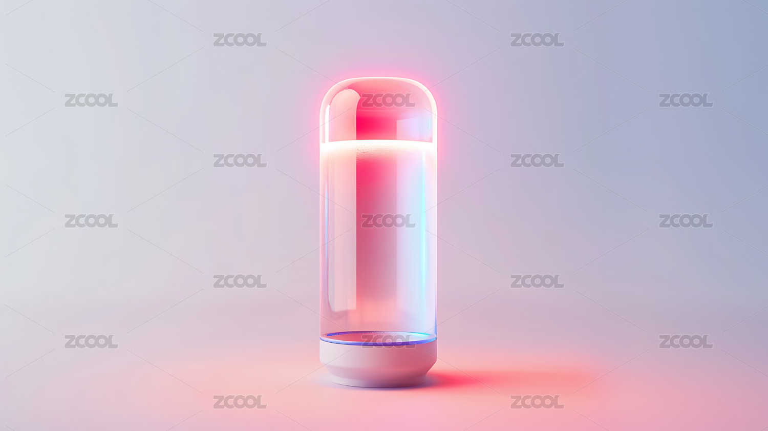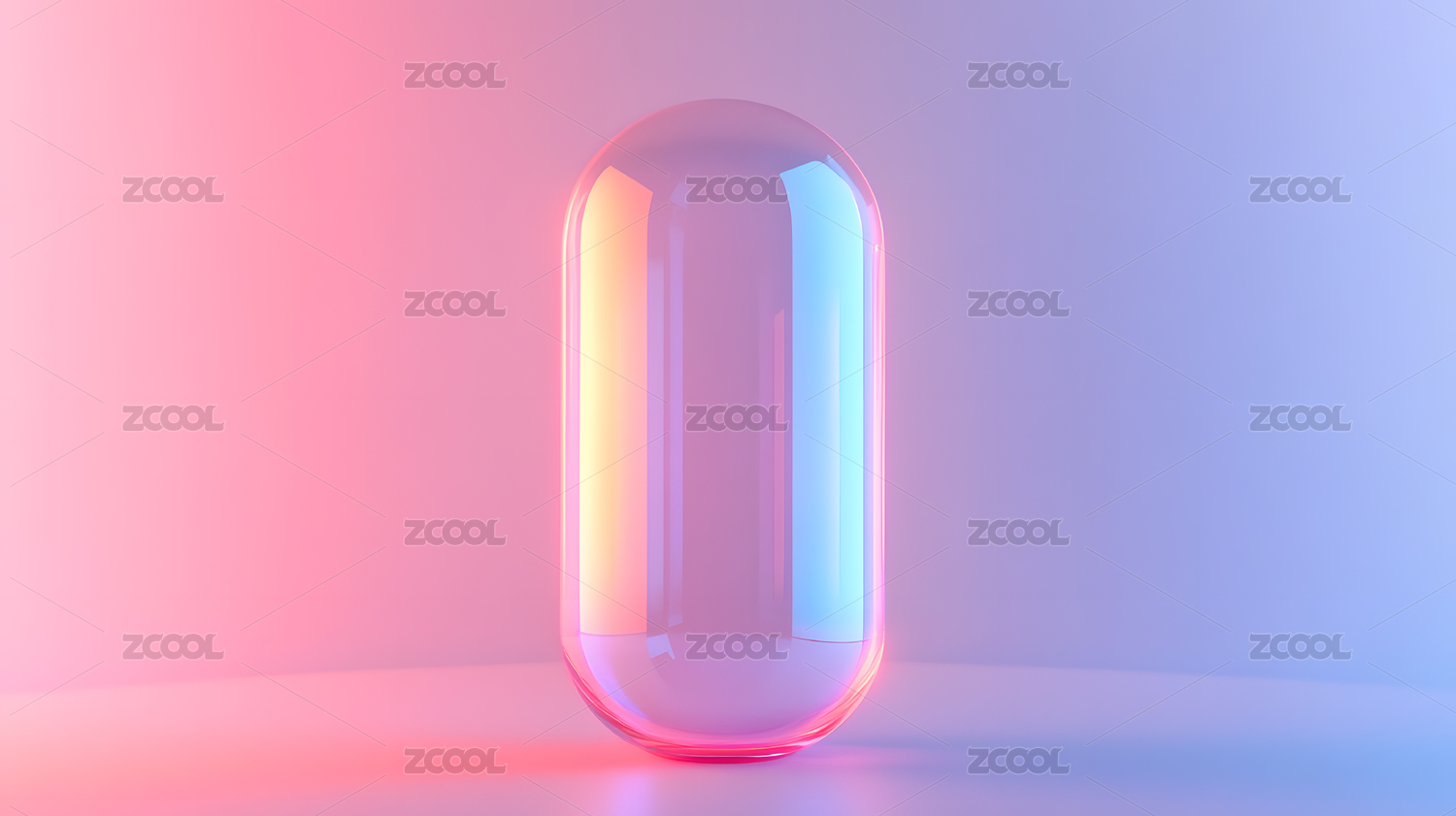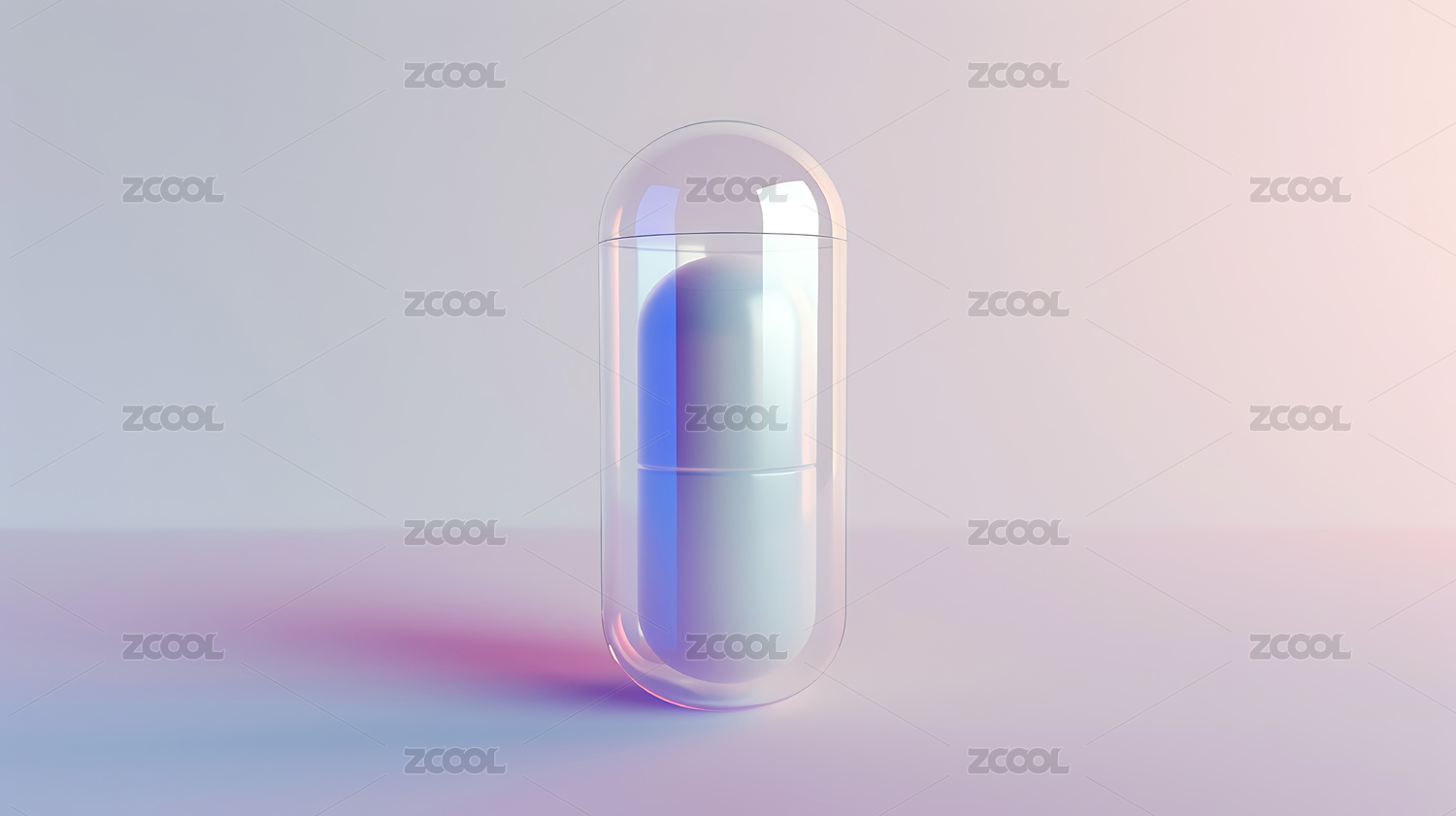 粉色渐变背景上的透明胶囊