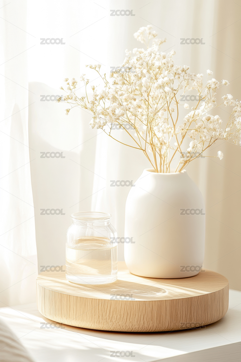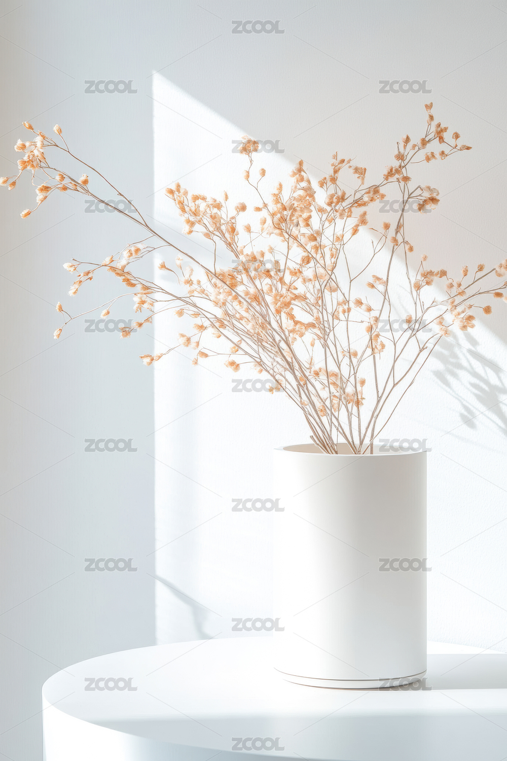 极简主义, 静物, 宁静, 优雅, 简洁, 日光, 和谐, 白色背景, 室内设计,干花
