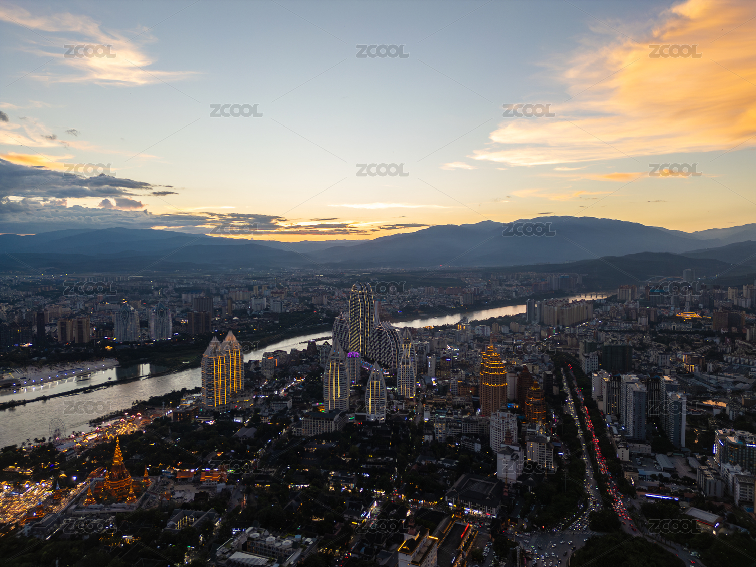 西双版纳景洪市告庄湄公河星光夜市日落黄昏