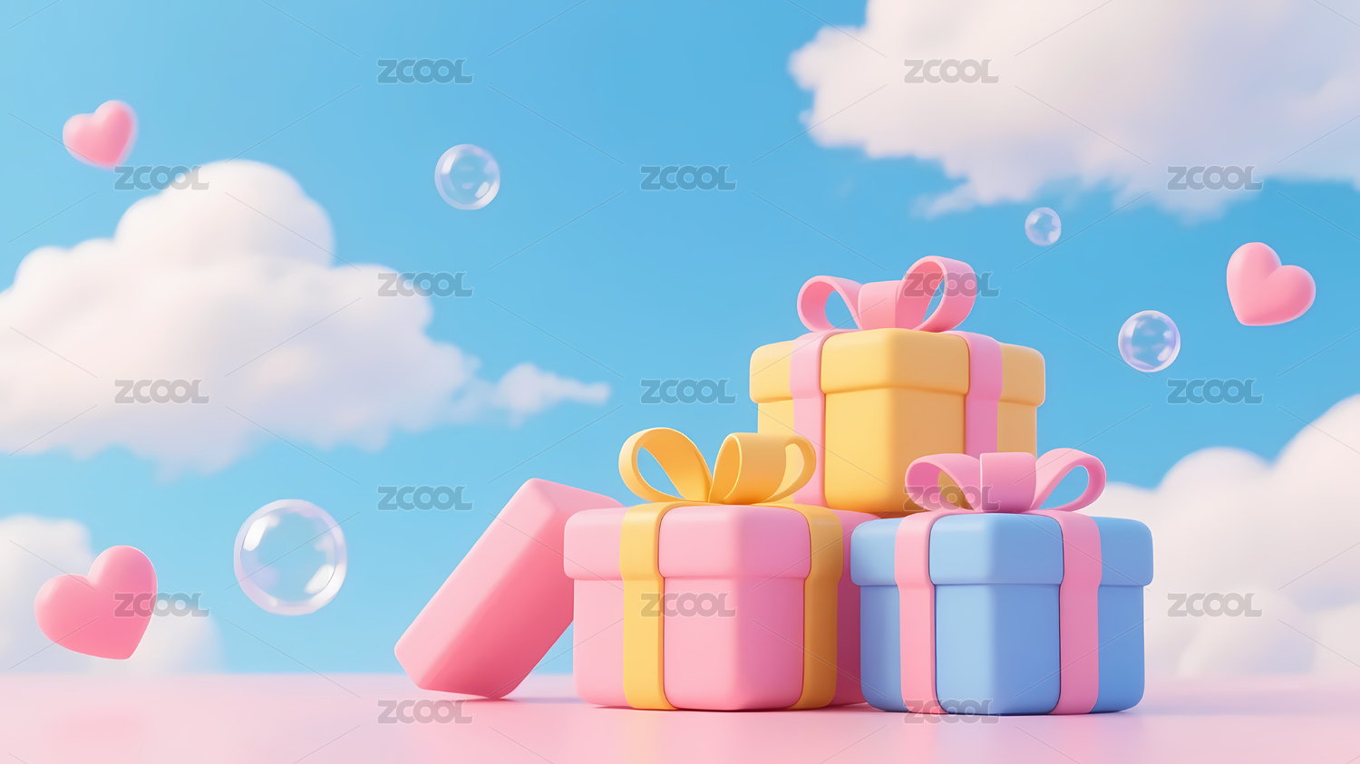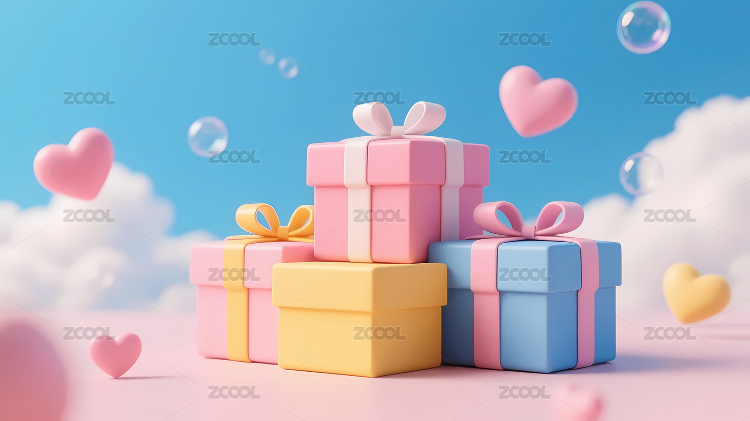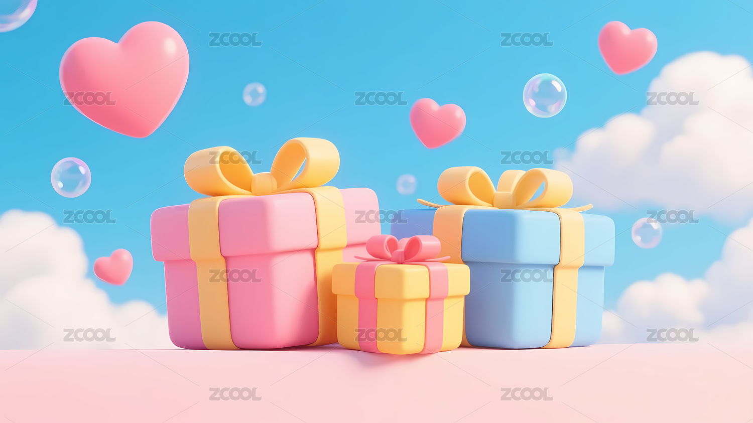 装饰,节日,庆祝,礼物,背景,天空,蓝色,礼物盒,气球,心形