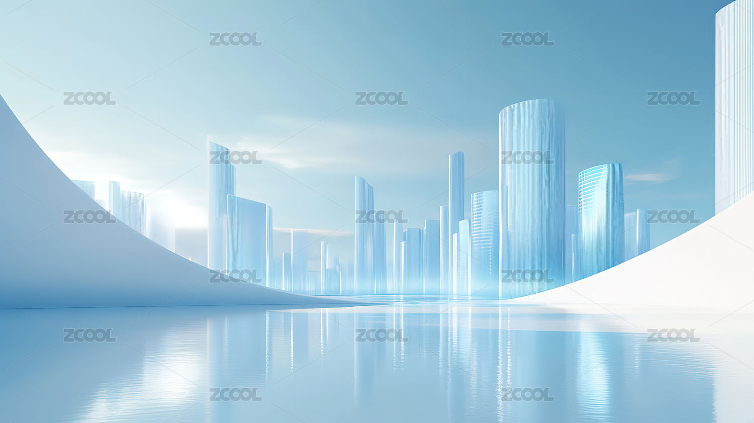 光线,反射,水面,未来,城市,天际线,建筑,现代,科技,天空