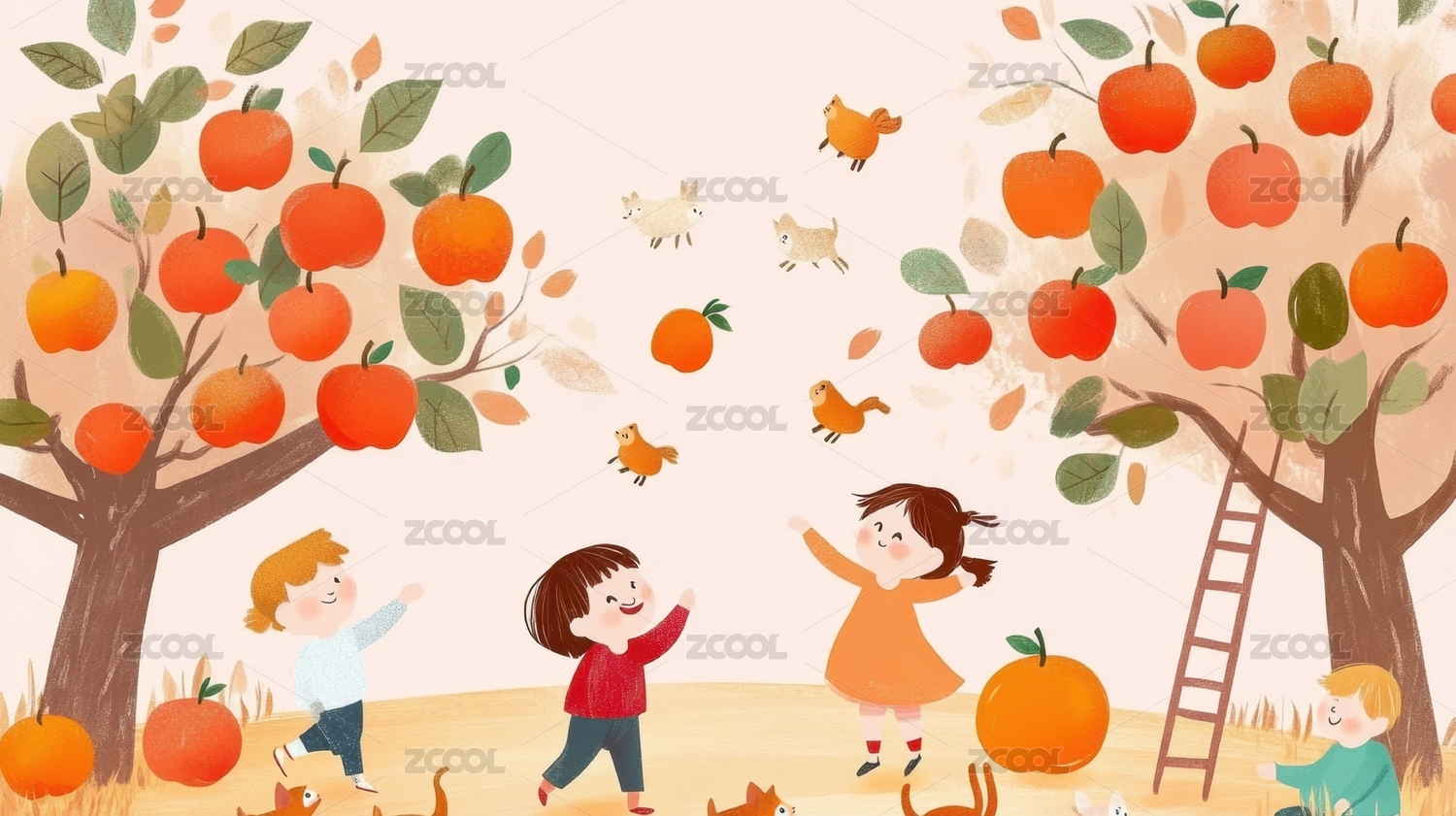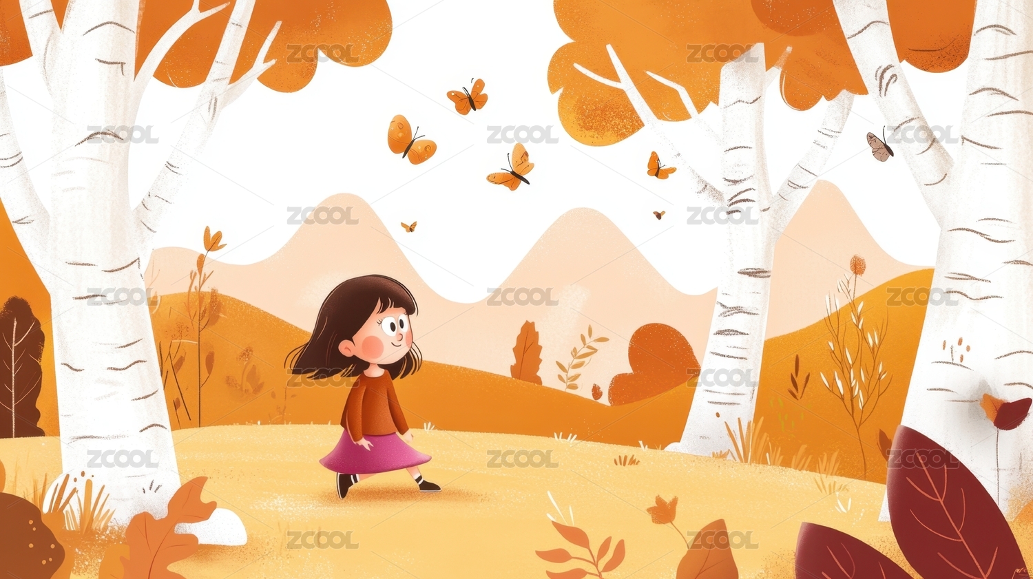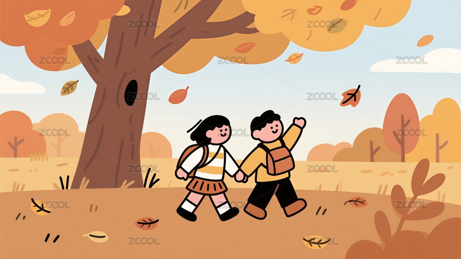 秋天秋季立秋秋分自然户外风景卡通漫画插画