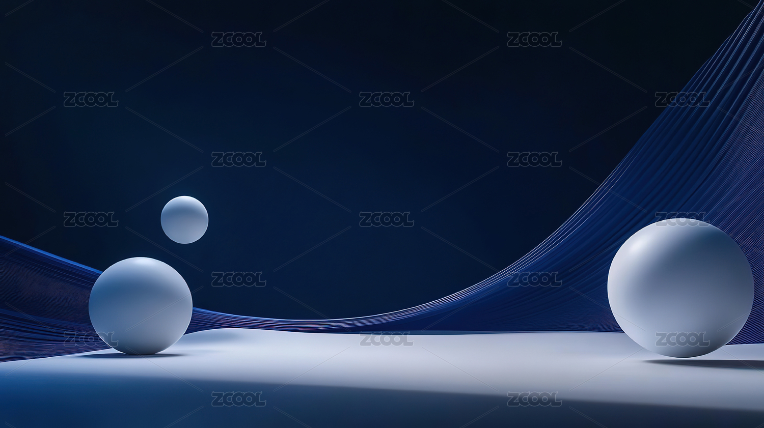 蓝色波浪与悬浮球体