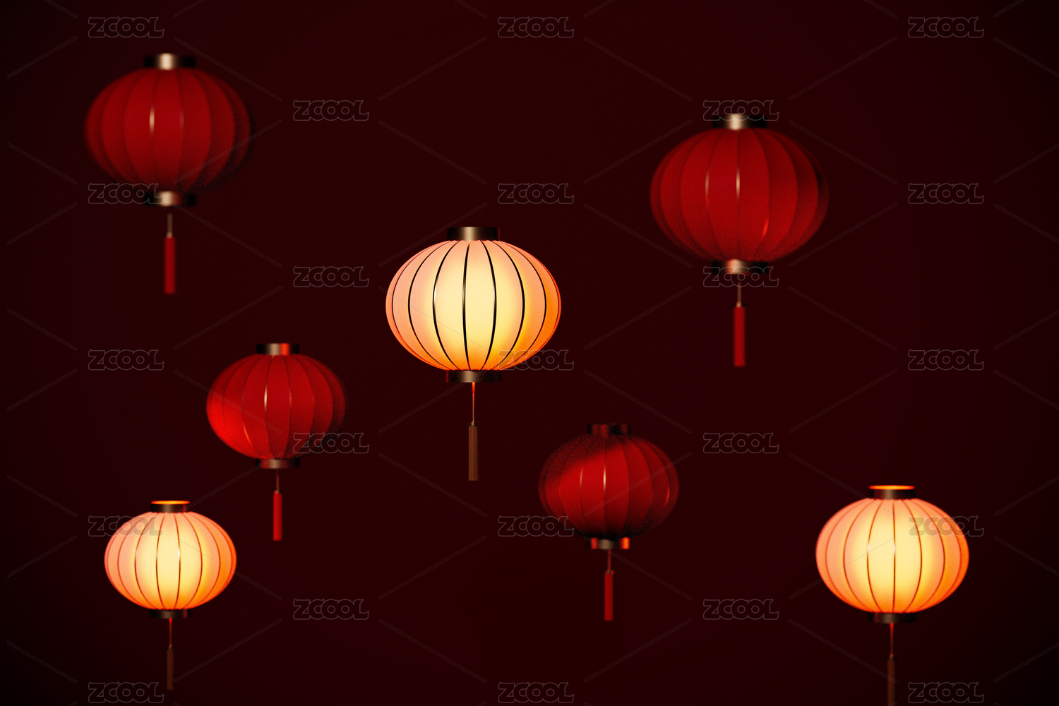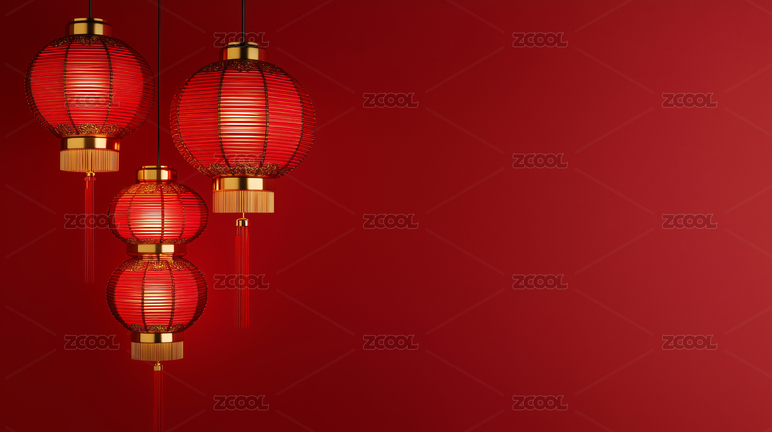 3D渲染灯笼红色背景