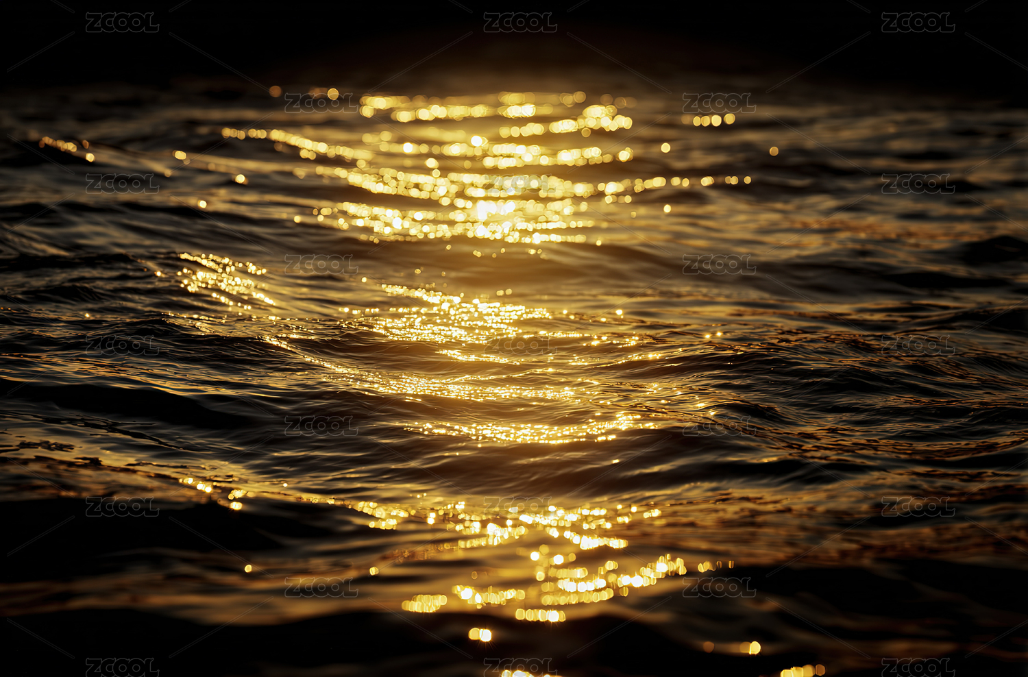 夕阳下泛着波纹的金色水面
