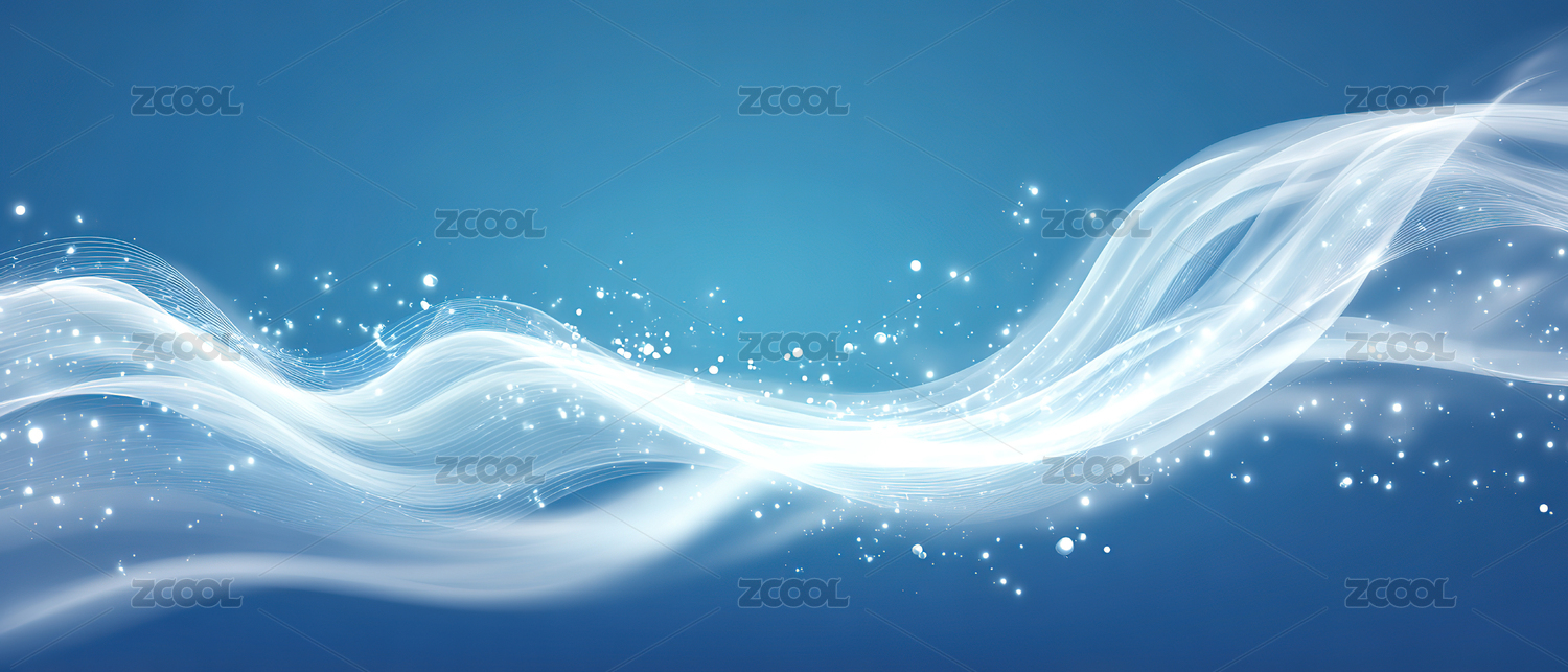 蓝色波浪与白色光点