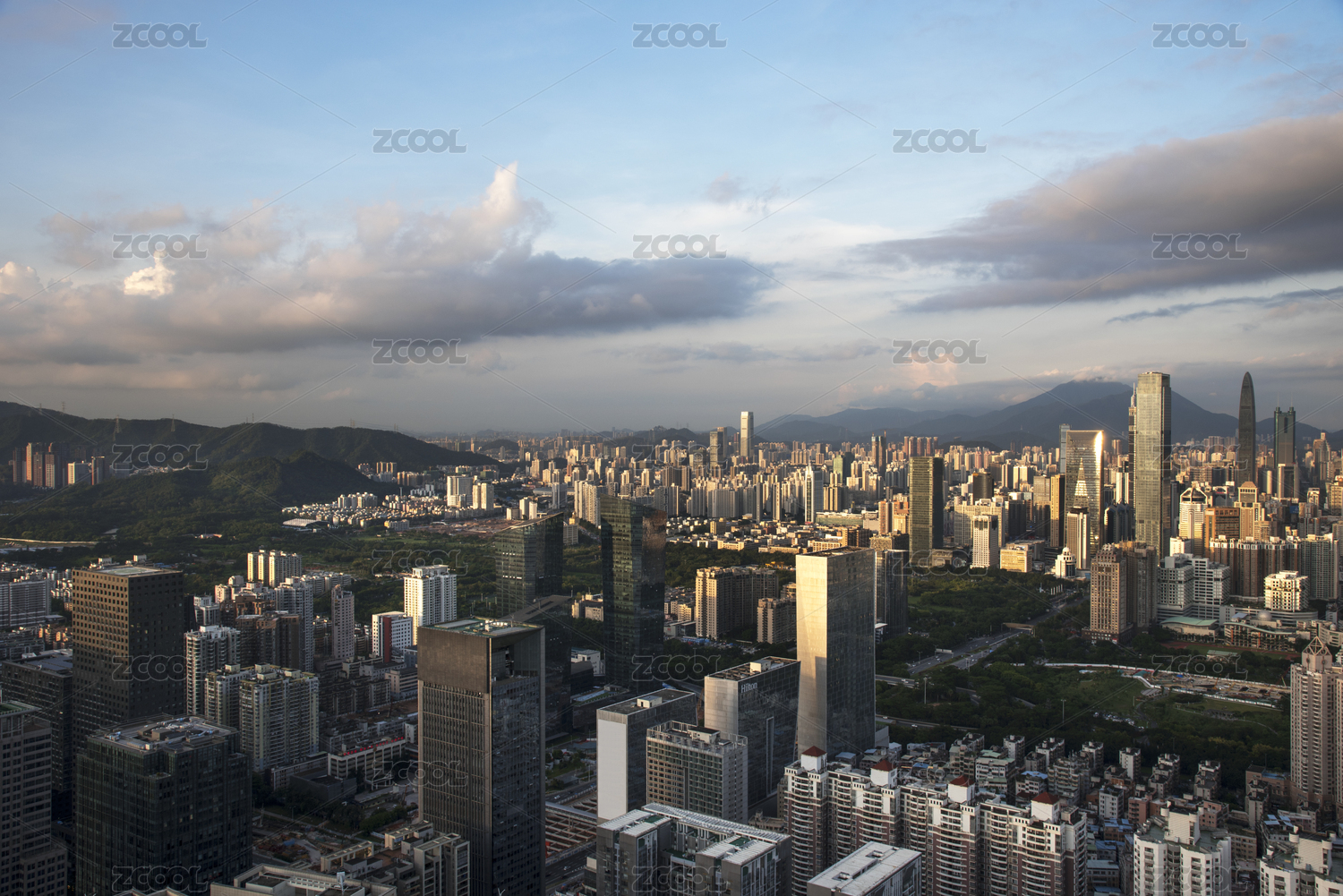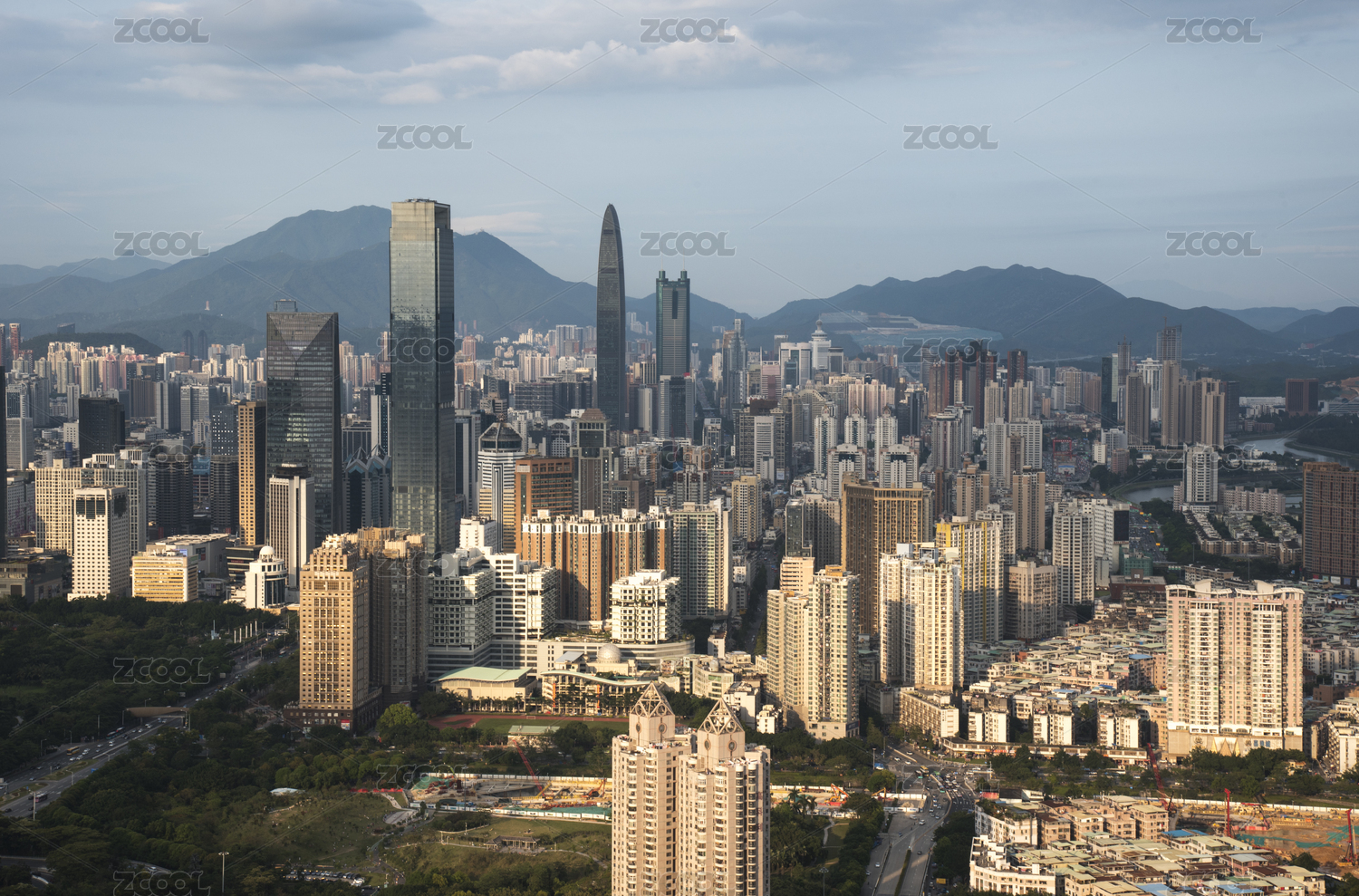 中国广东省深圳城市天际线建筑群高楼大厦景观