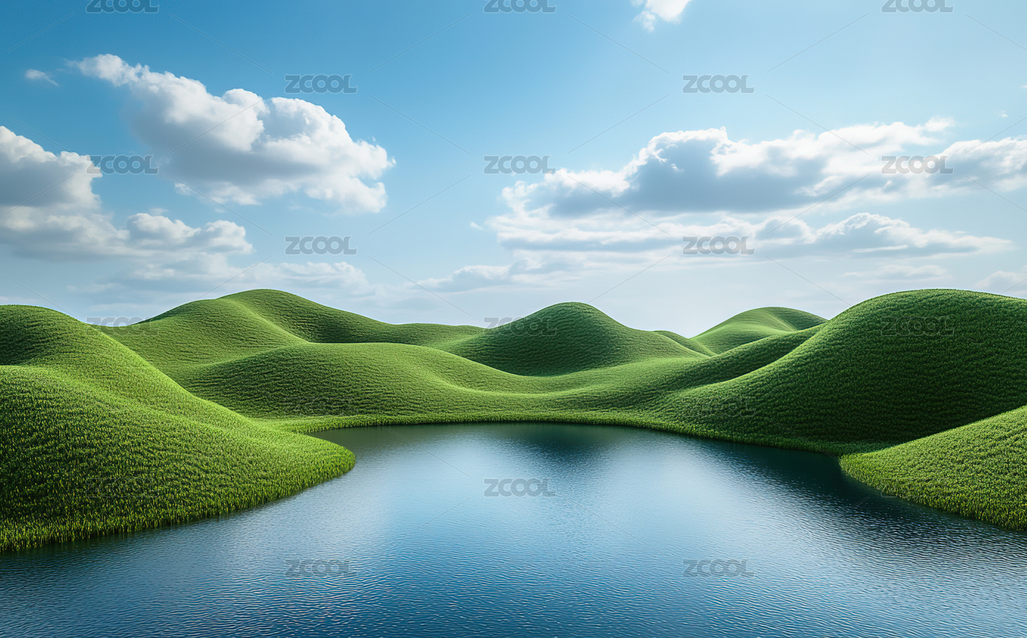 梦幻般翠绿山丘与宁静湖泊