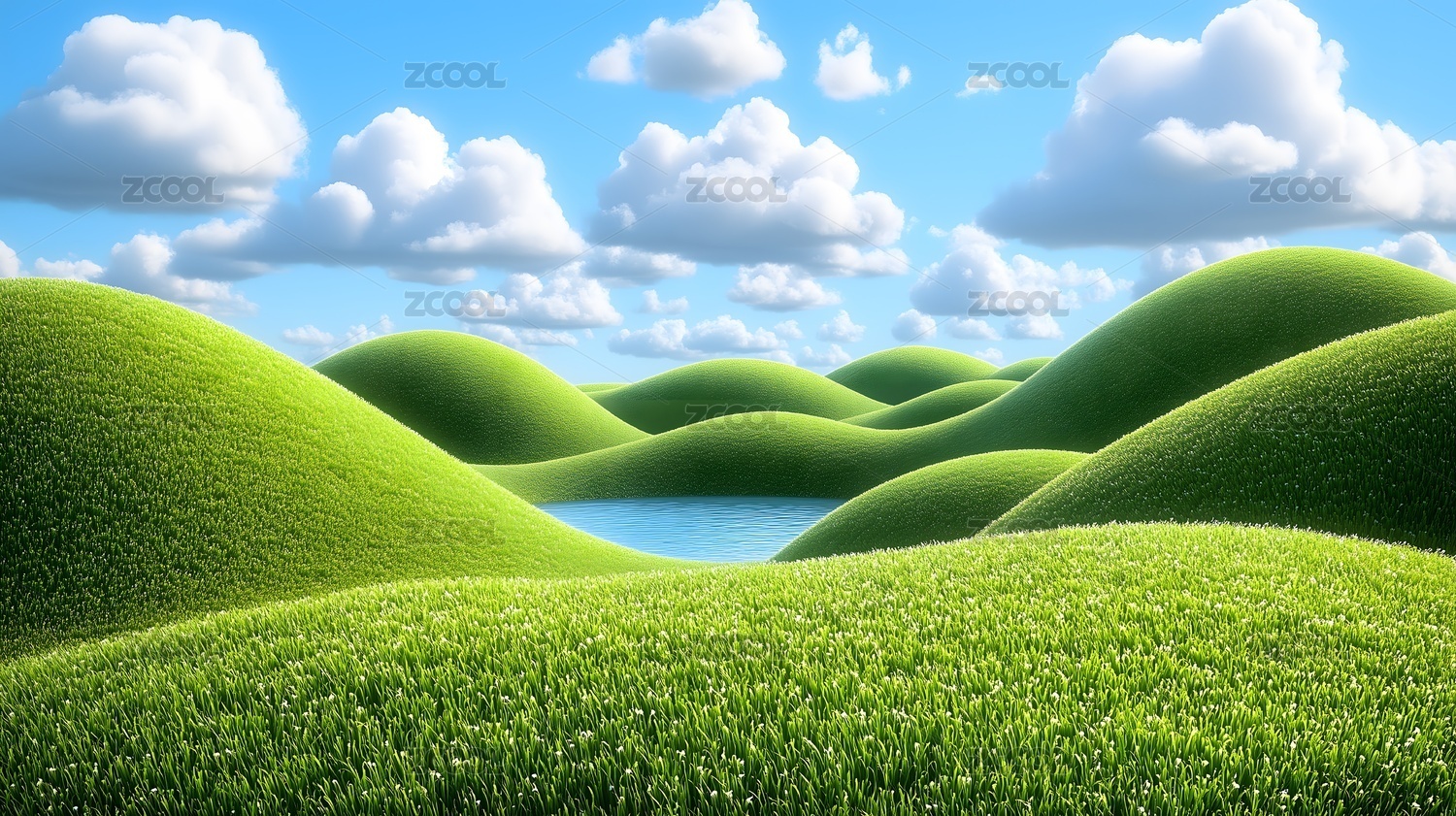 梦幻般的绿色丘陵水面