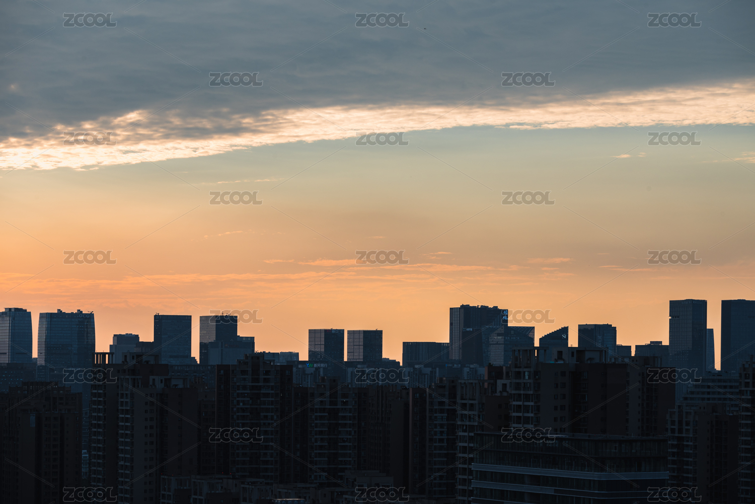 成都,高新区,雪山,晚霞,都市风景,城市天际线,城市,摩天大楼,日落,剪影