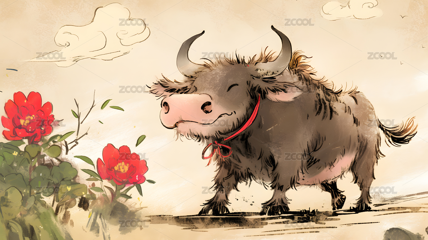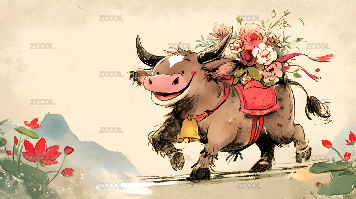 卡通小牛萌趣形象场景