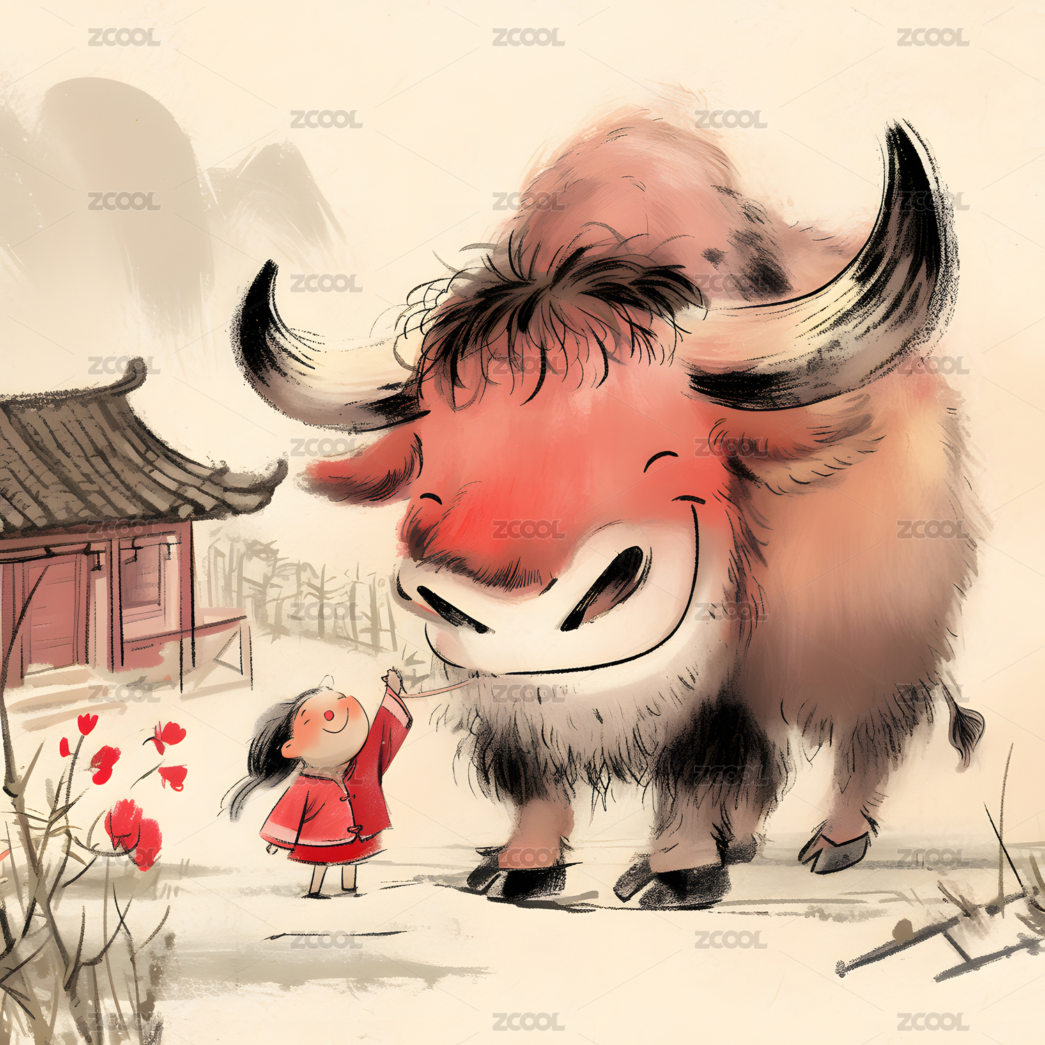 手绘卡通牛插画