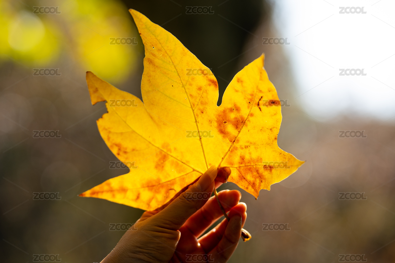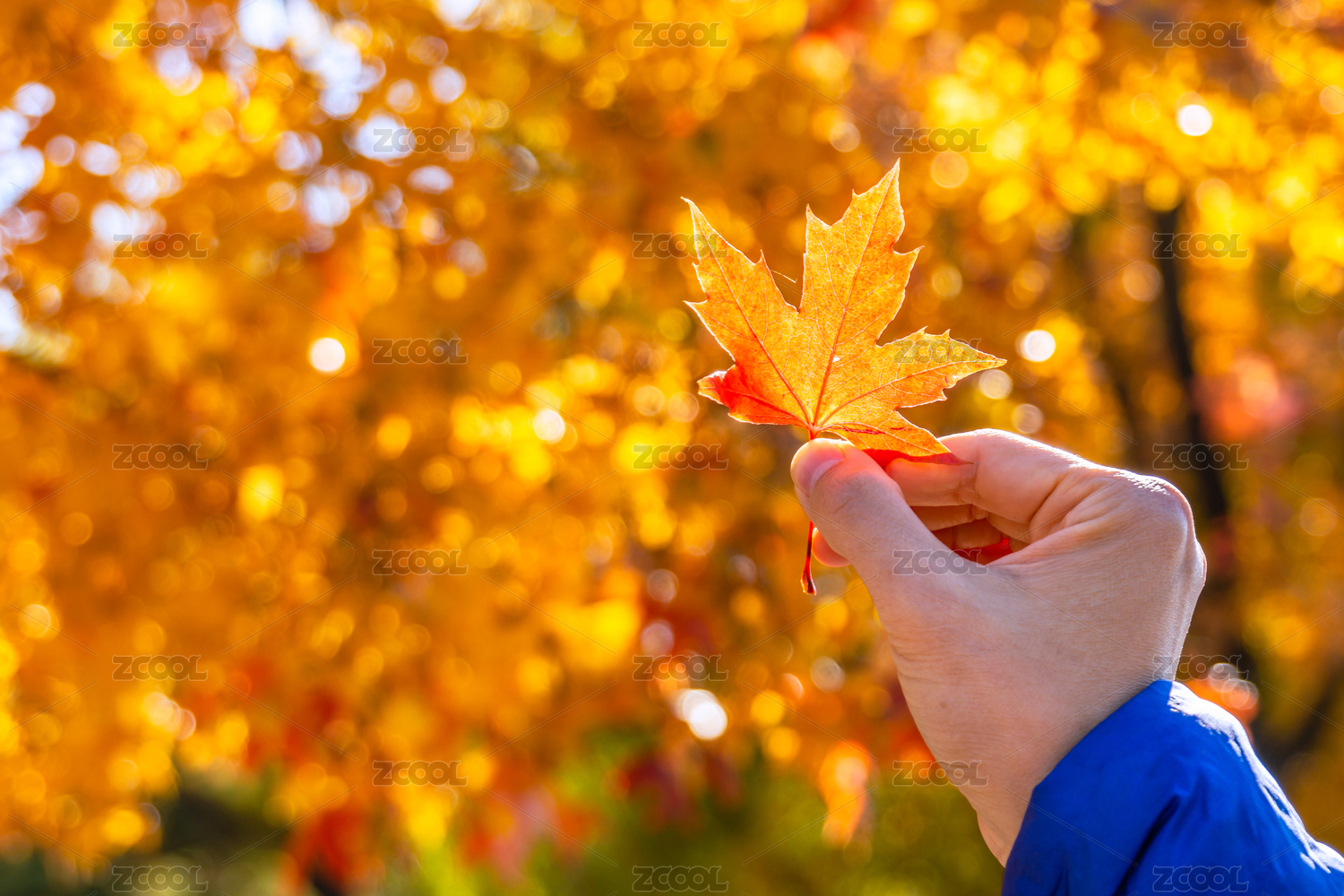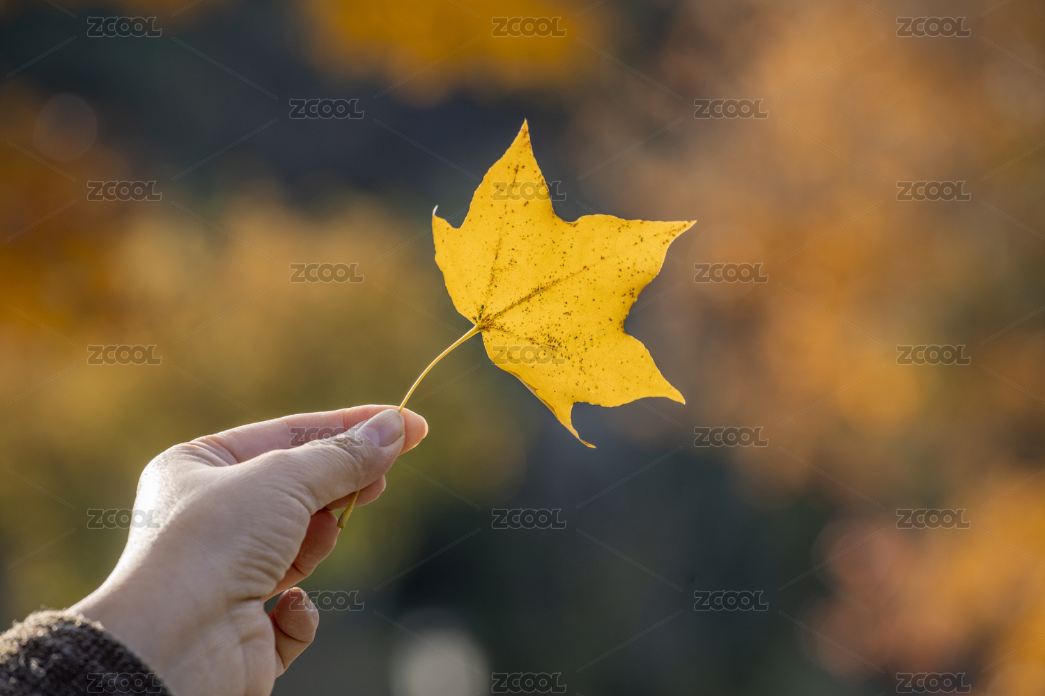 秋天手持金黄枫叶特性