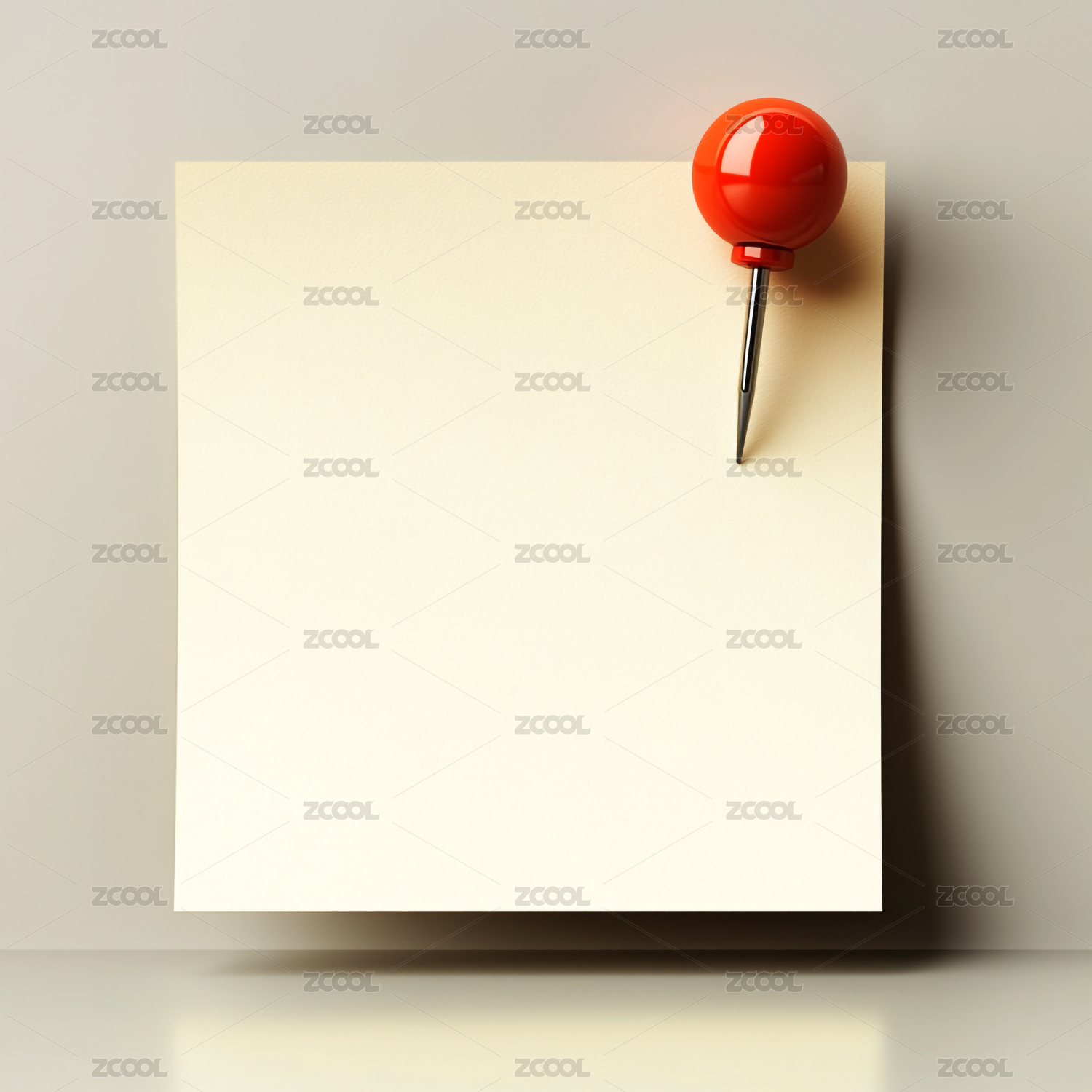 红色图钉固定空白便签纸