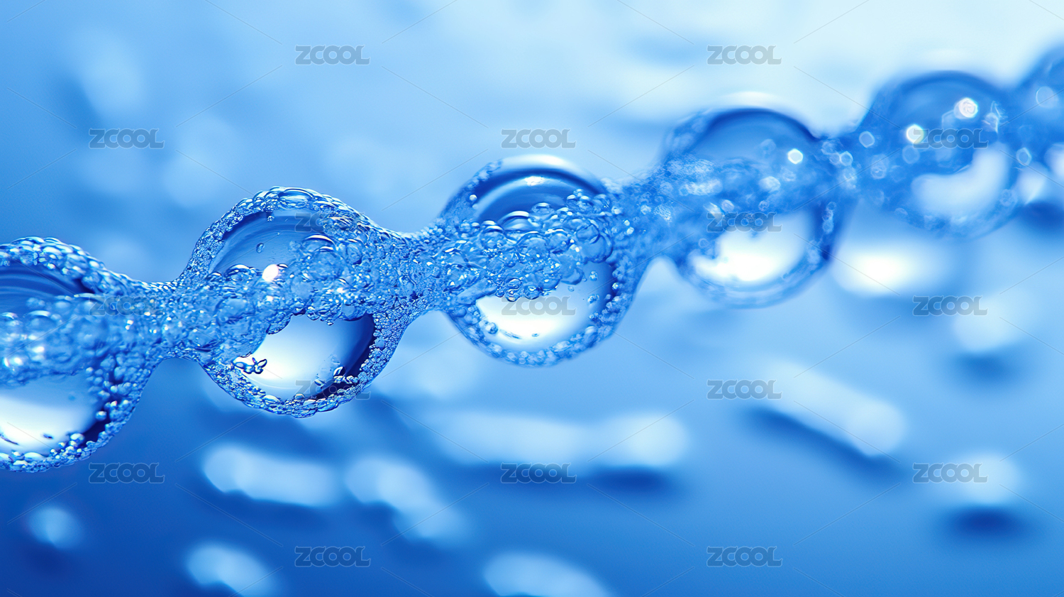 蓝色背景下水滴的特写镜头