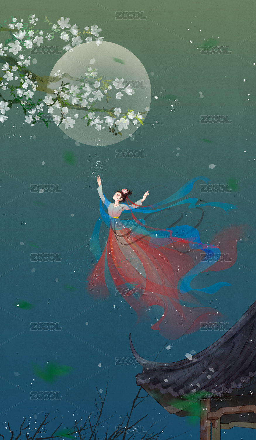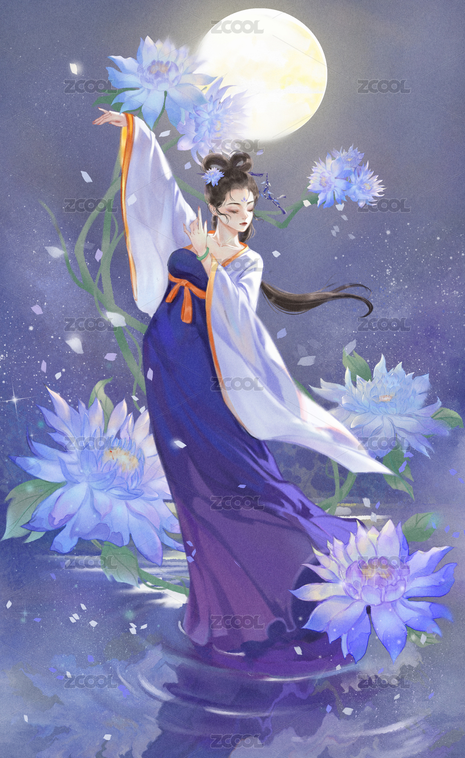 月下水面上翩翩起舞的古风少女
