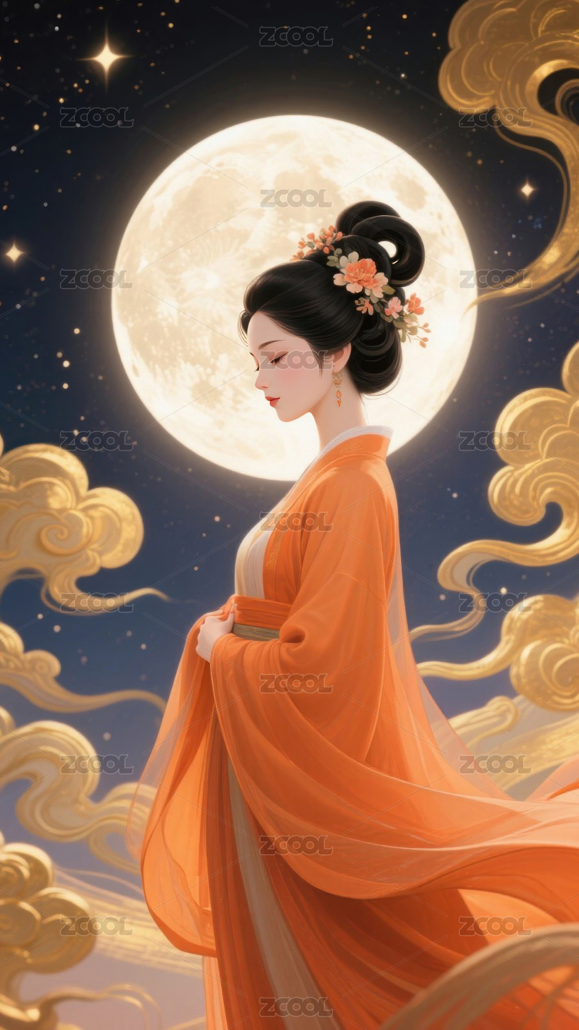 脚踩祥云的嫦娥