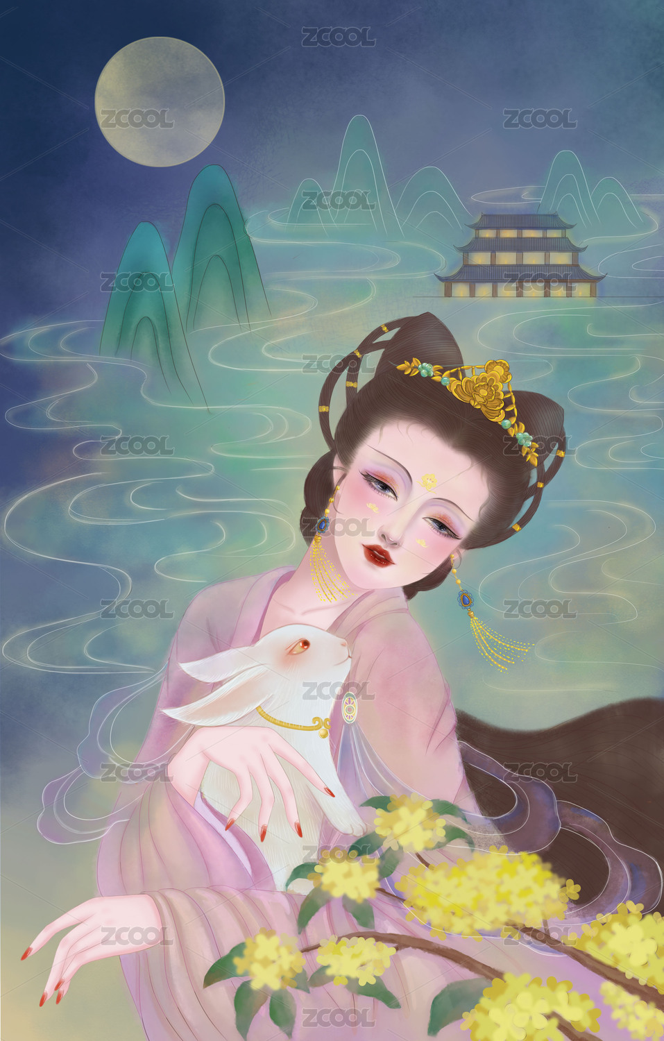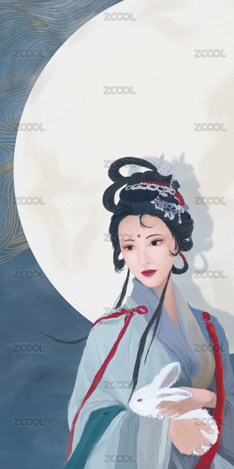 嫦娥抱玉兔中秋节插画