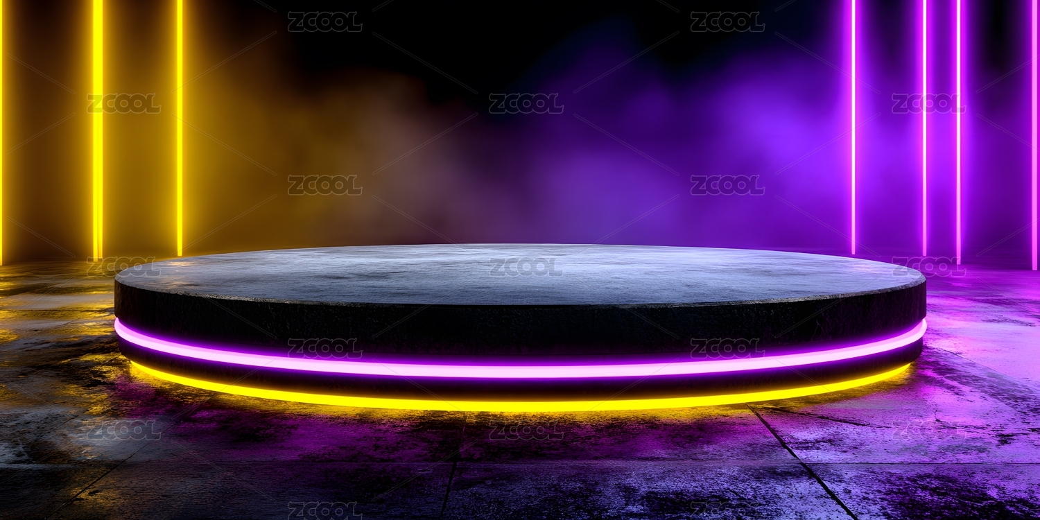 金色,圆形,平台,紫色,灯光,展示,背景,奢华,现代,设计