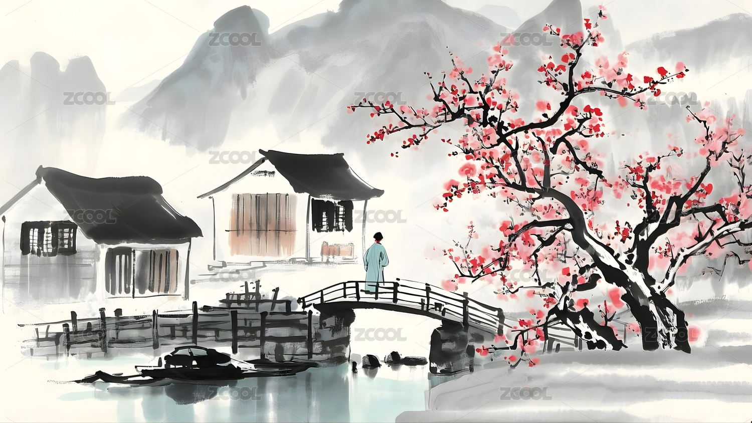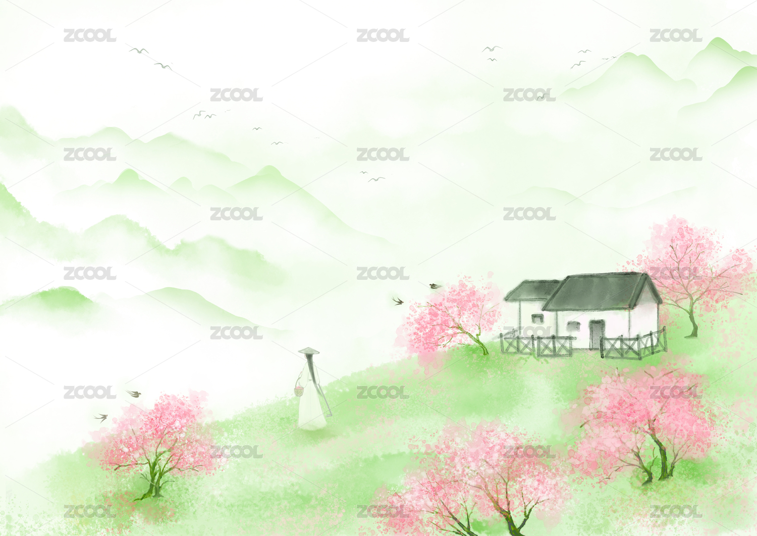 中国风春天水墨山水风景
