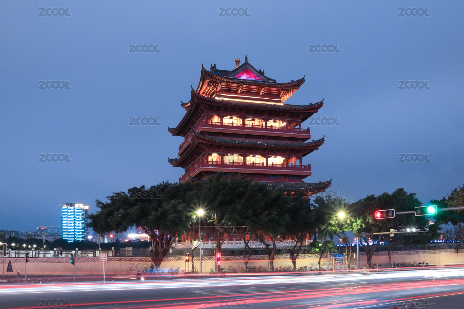 广西南宁三街两巷畅游阁城市风光建筑夜景