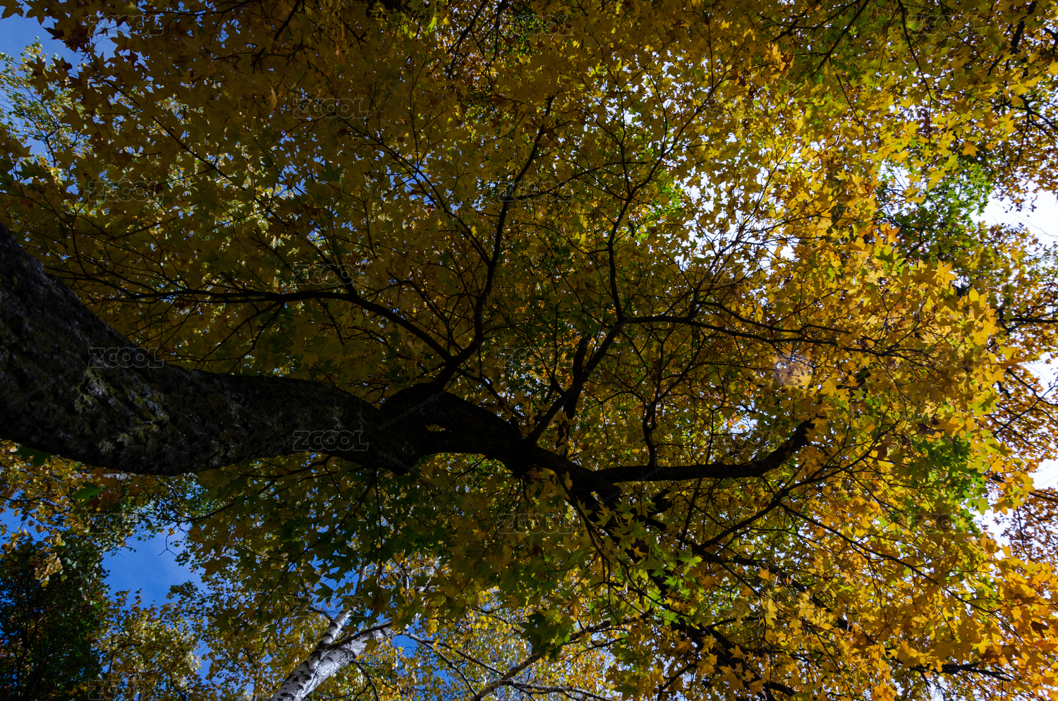 一片五颜六色的树枝仰拍