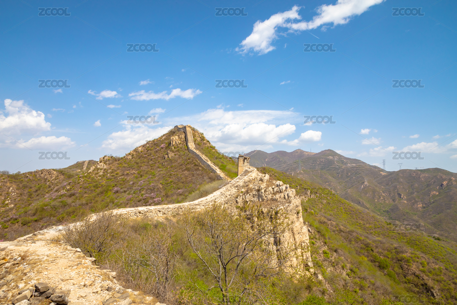 残缺的金山岭长城城墙及延伸到远处的长城,北京密云