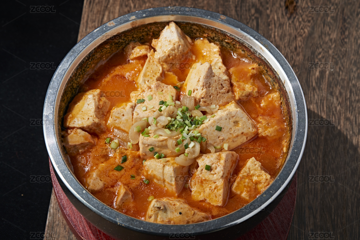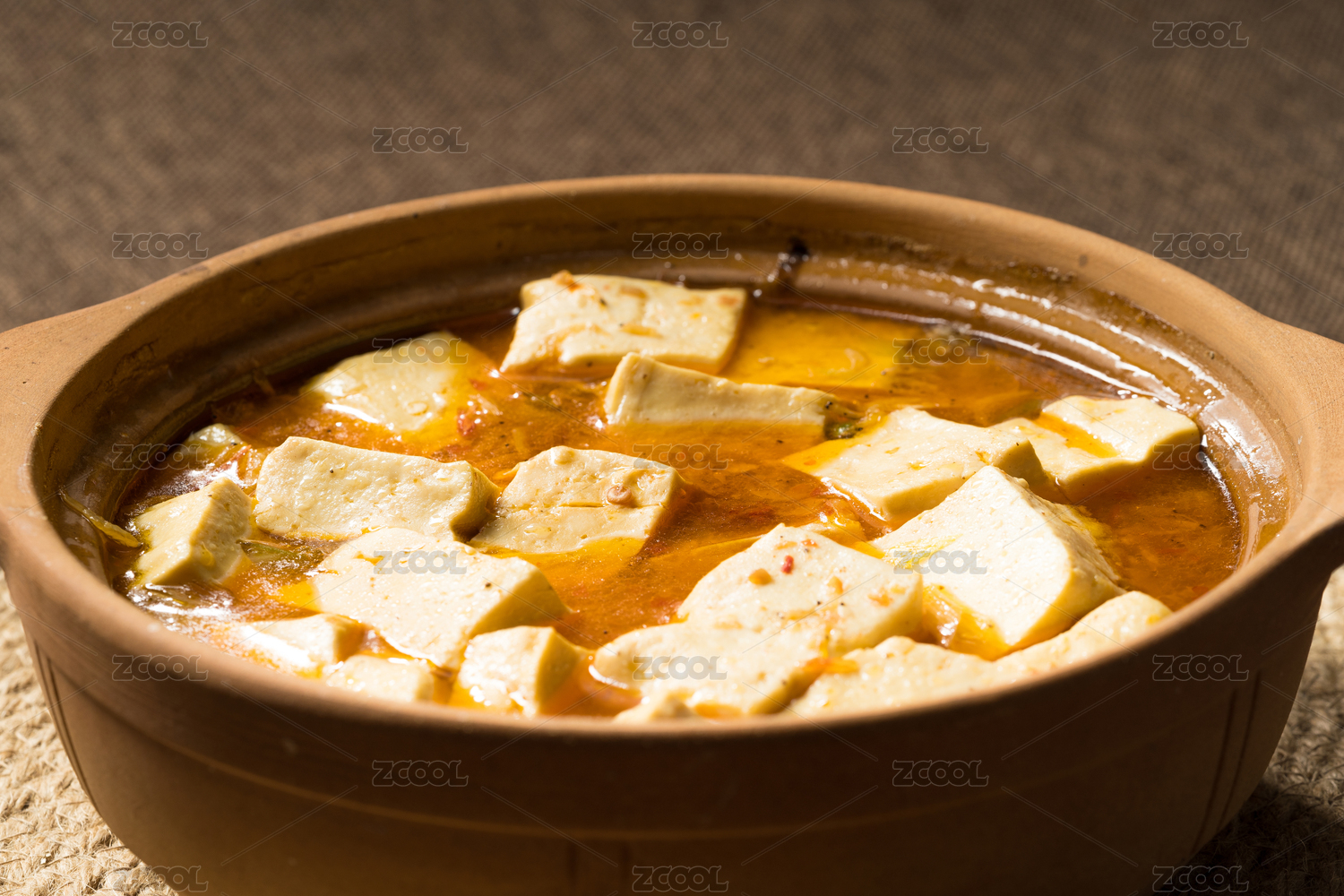 黑色背景中的中国传统菜肴麻婆豆腐特写