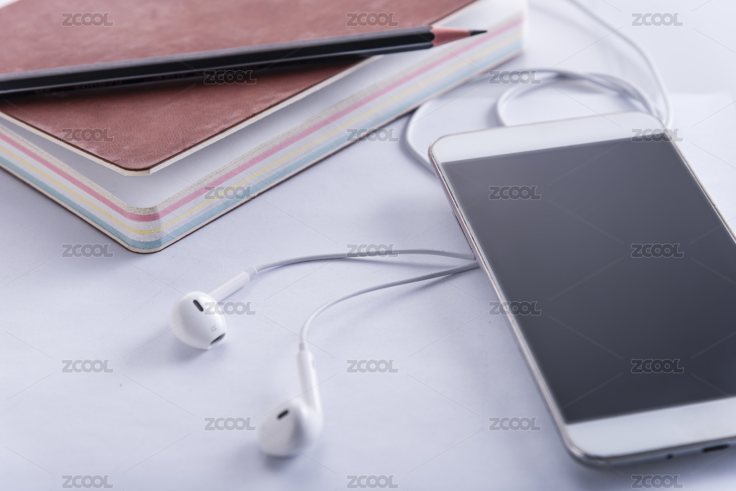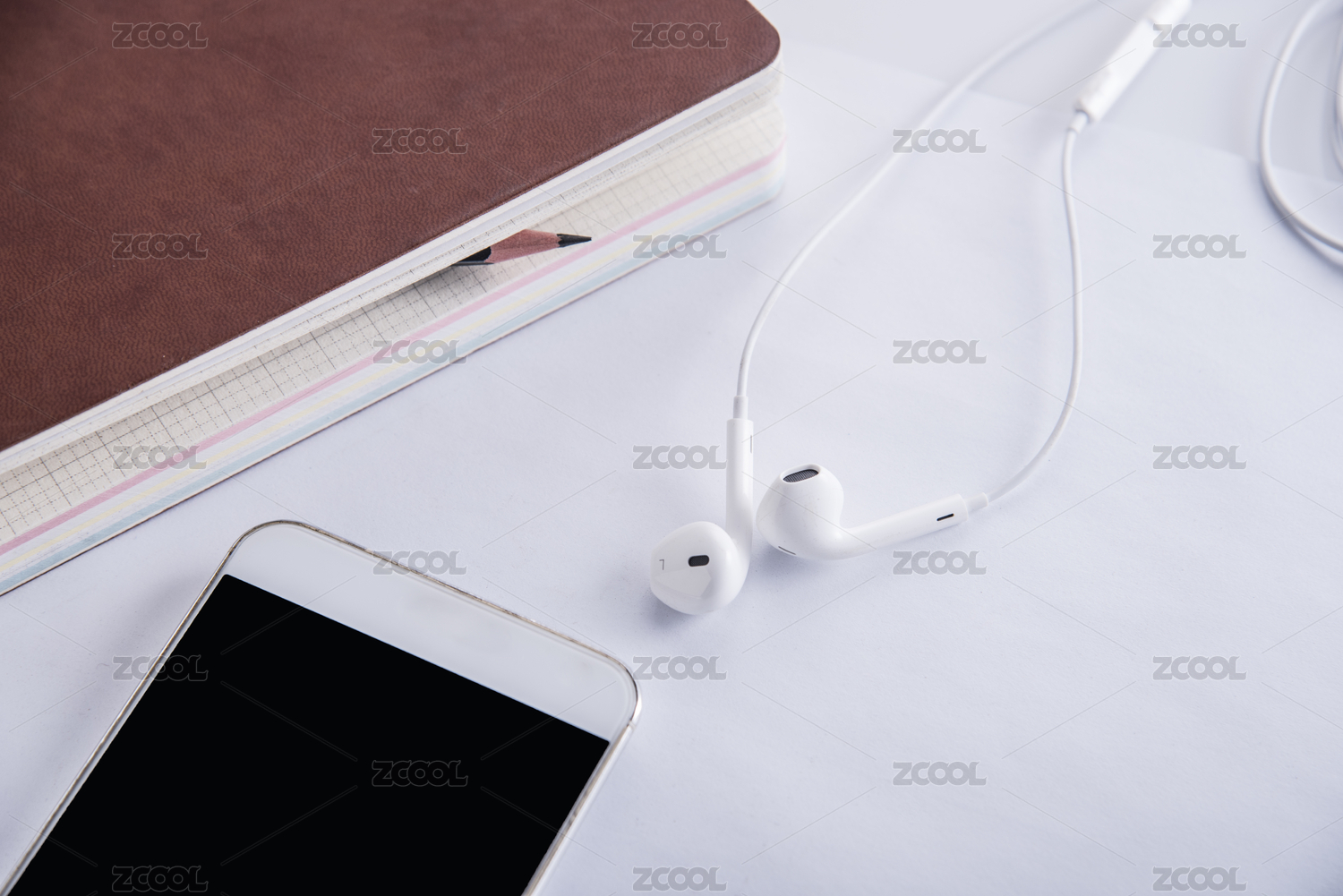 桌面上的手机和耳机