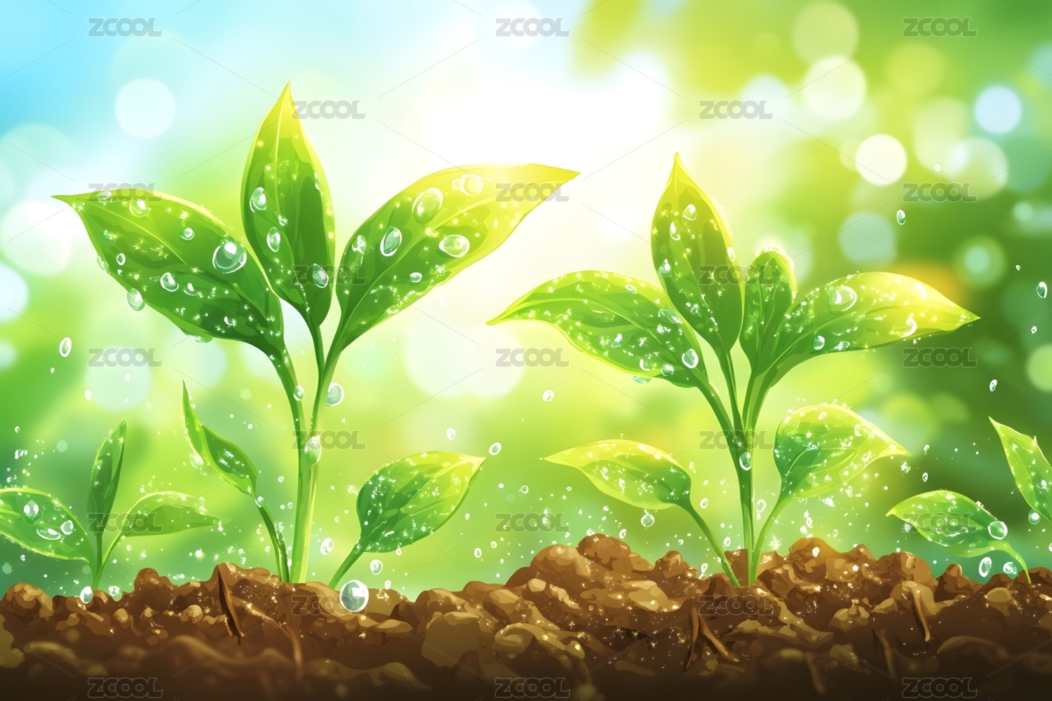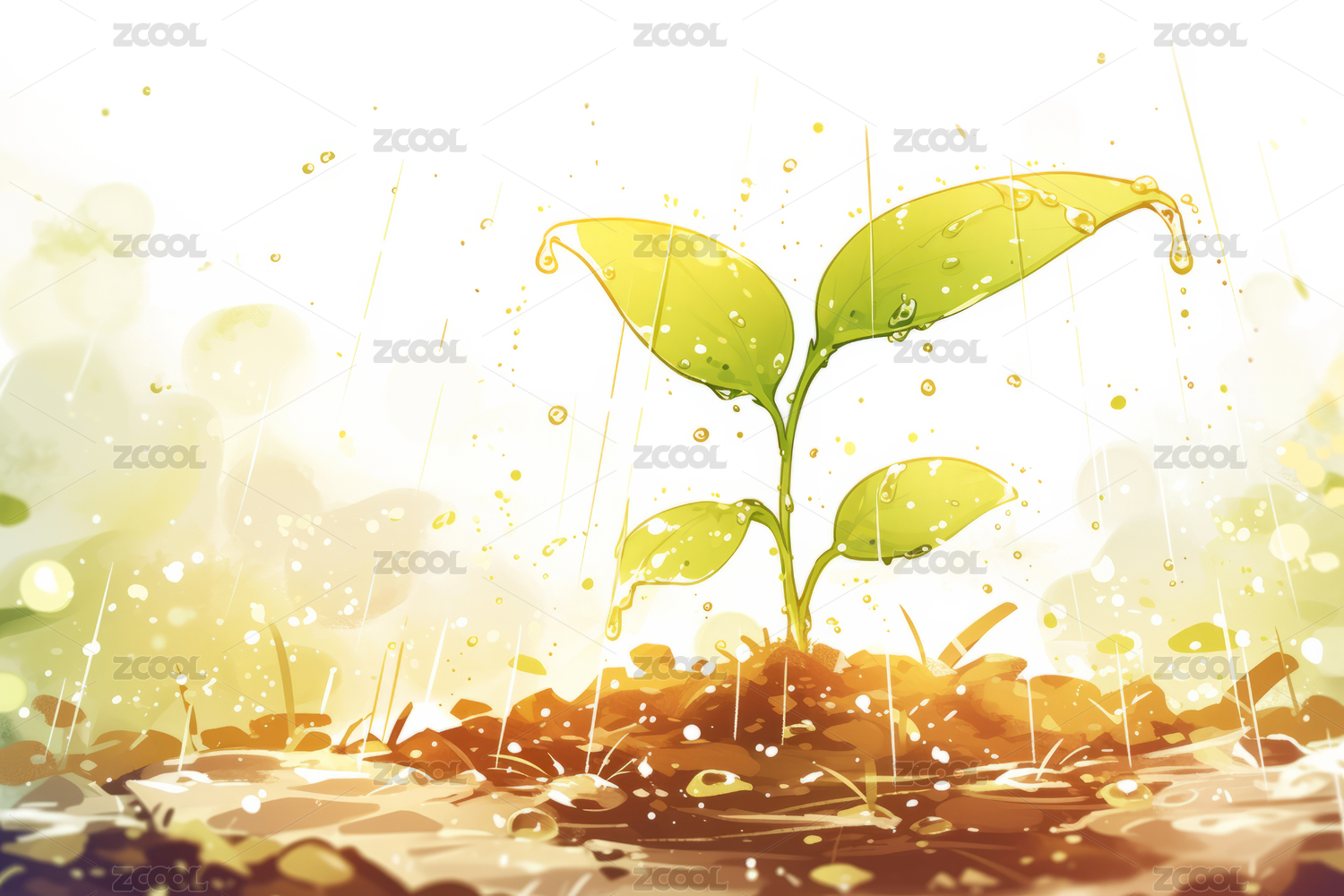 春天雨水节气谷雨种子长出幼苗嫩芽概念插图