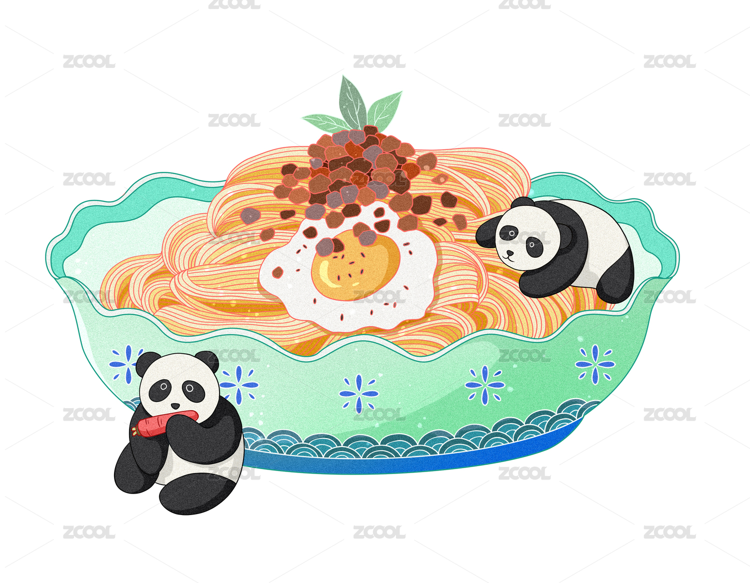 食品,插画,美味,国潮风,菜单,传统,面条,担担面,四川,熊猫