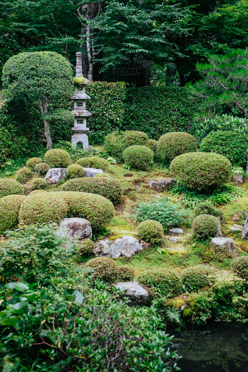 亚洲日本京都清水寺冬季清晨雨后园林石灯
