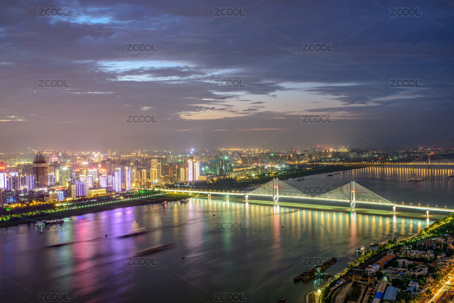 湖北省武汉市鹦鹉洲长江大桥夜景