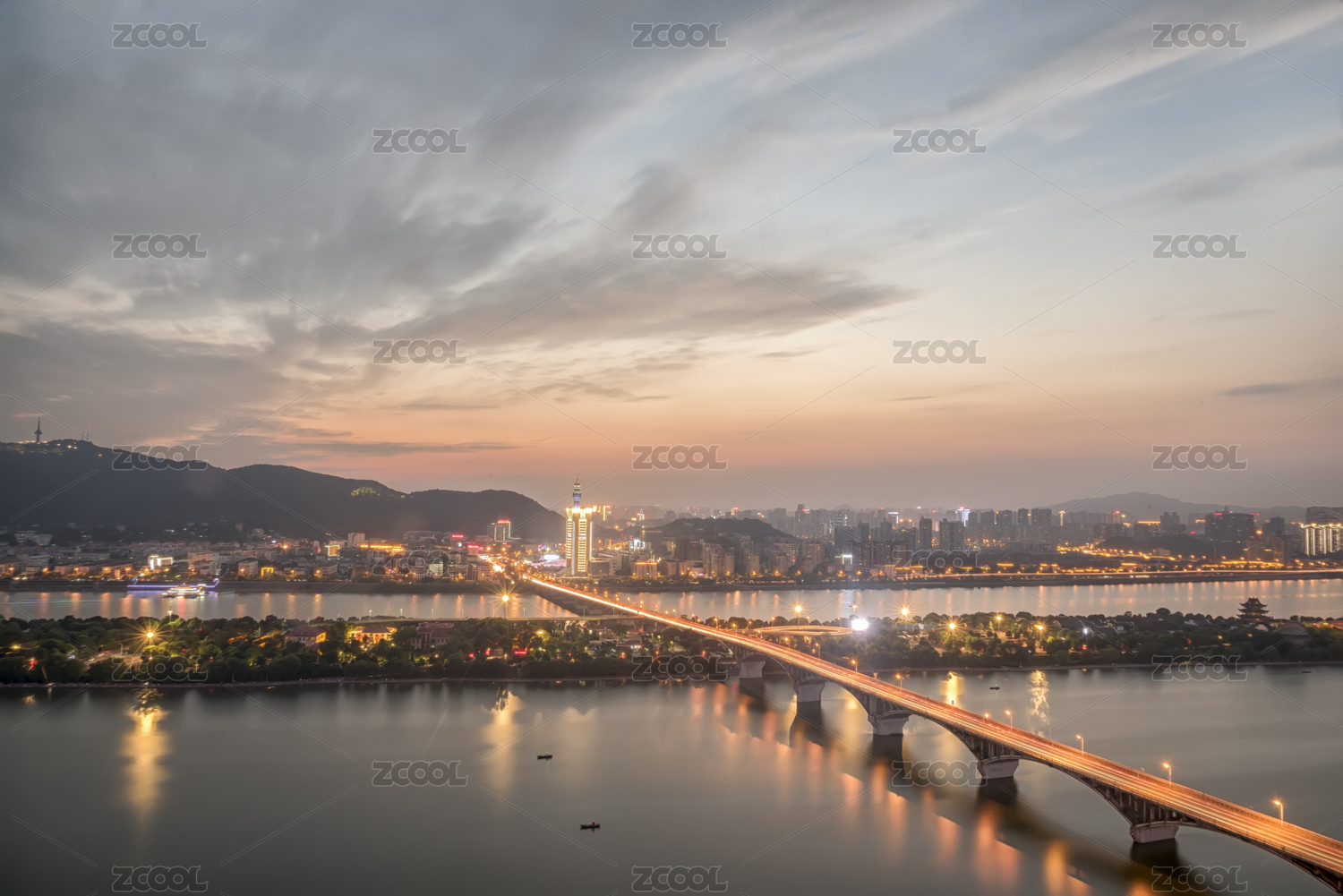 长沙市橘子洲大桥湘江一桥日落黄昏夜景