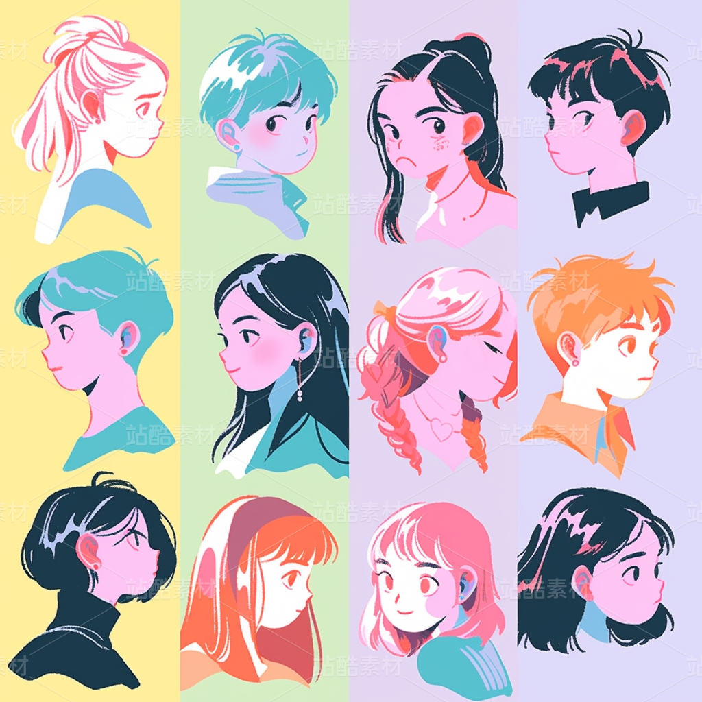 绘画插图,彩色图片,四个人,彩色,女性,女,美女,女人,女孩,人物