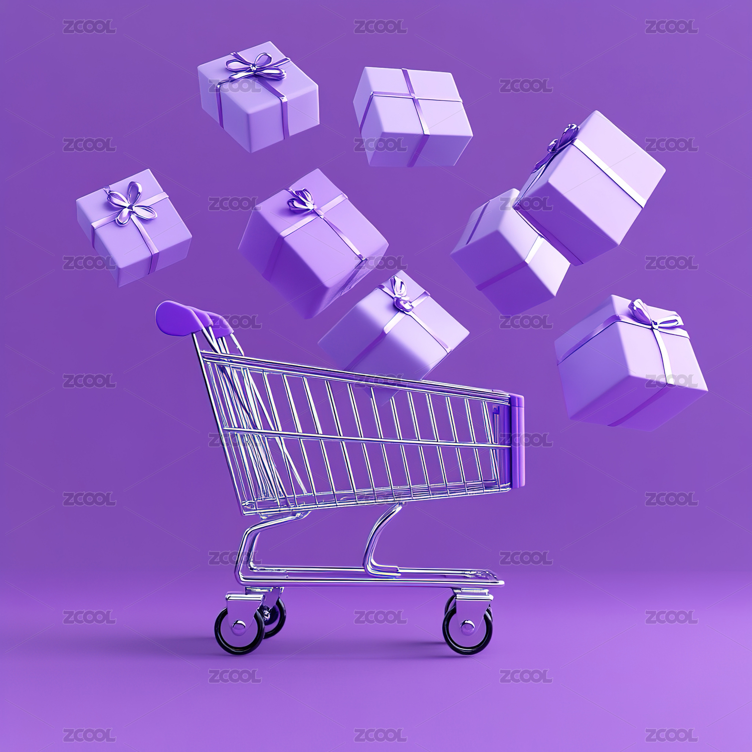 紫色礼盒购物篮