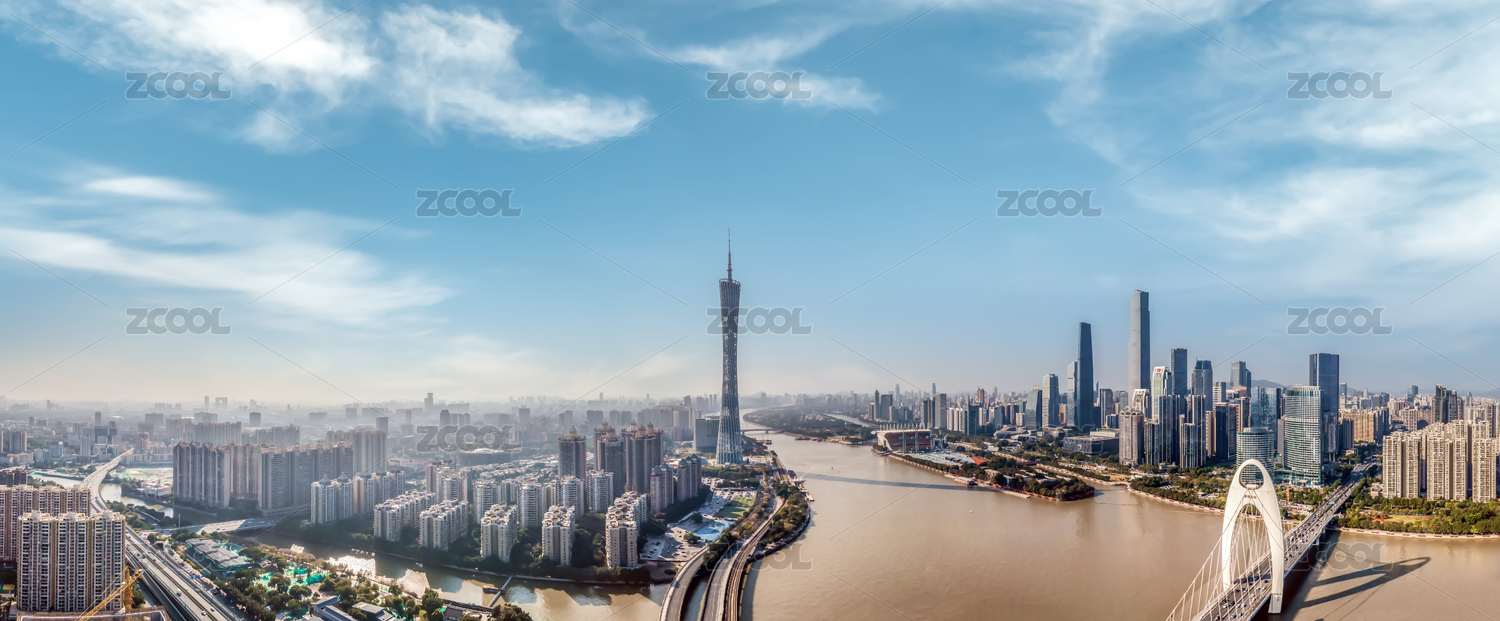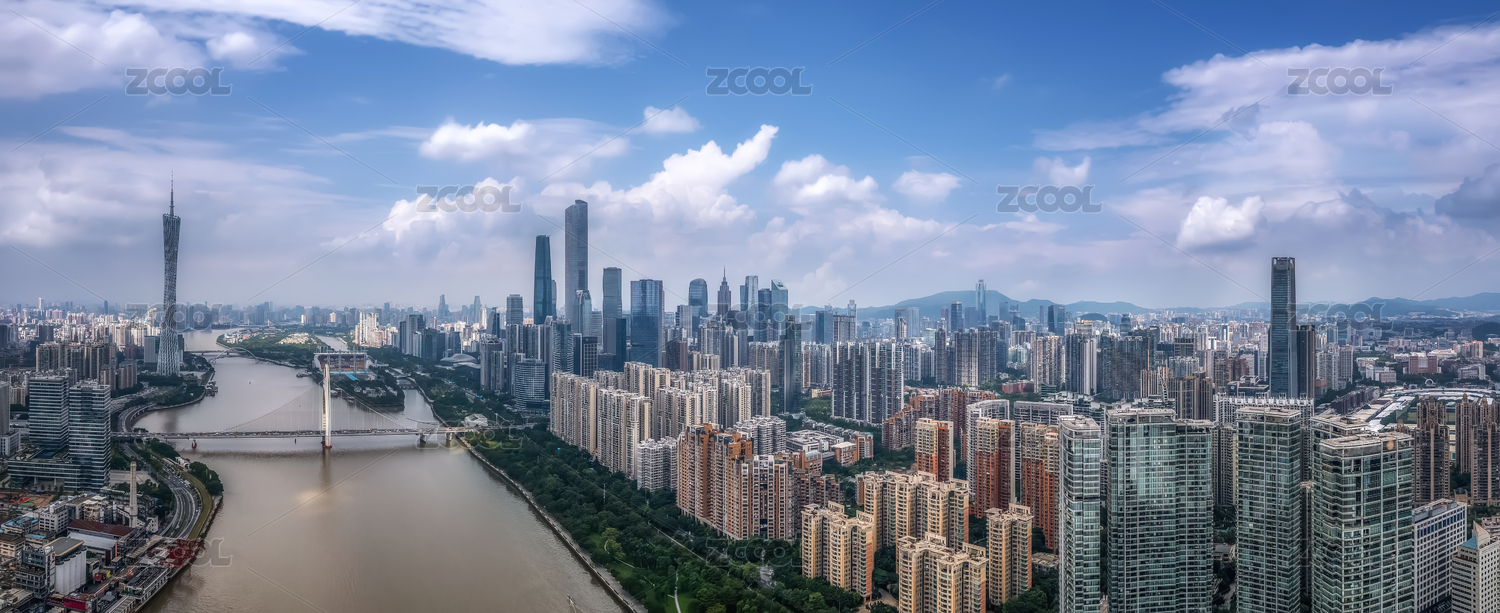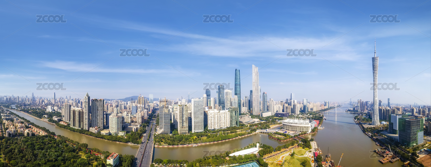 广州珠江两岸广州塔东塔西塔建筑群天际线