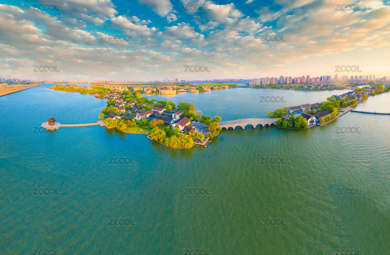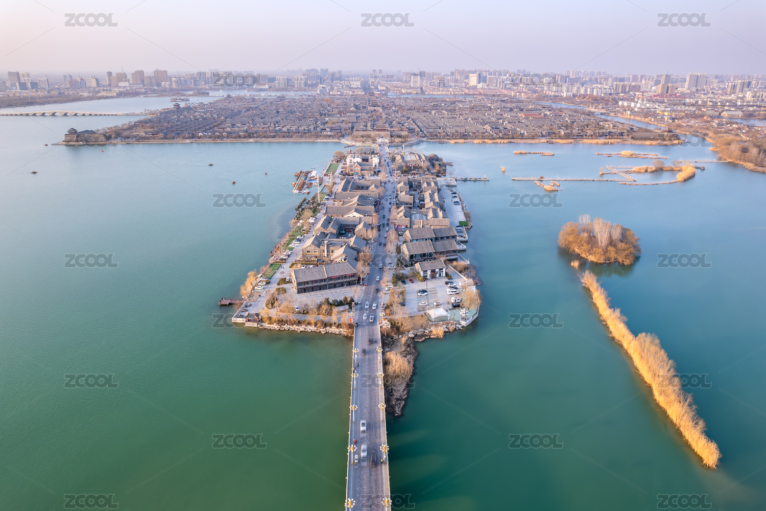 中国山东聊城东昌湖景区南关岛航拍