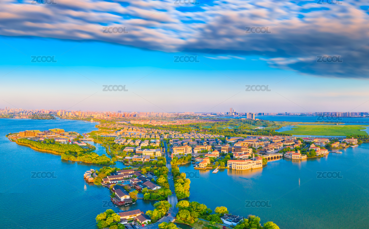 中国江苏省苏州市金鸡湖畔的别墅群