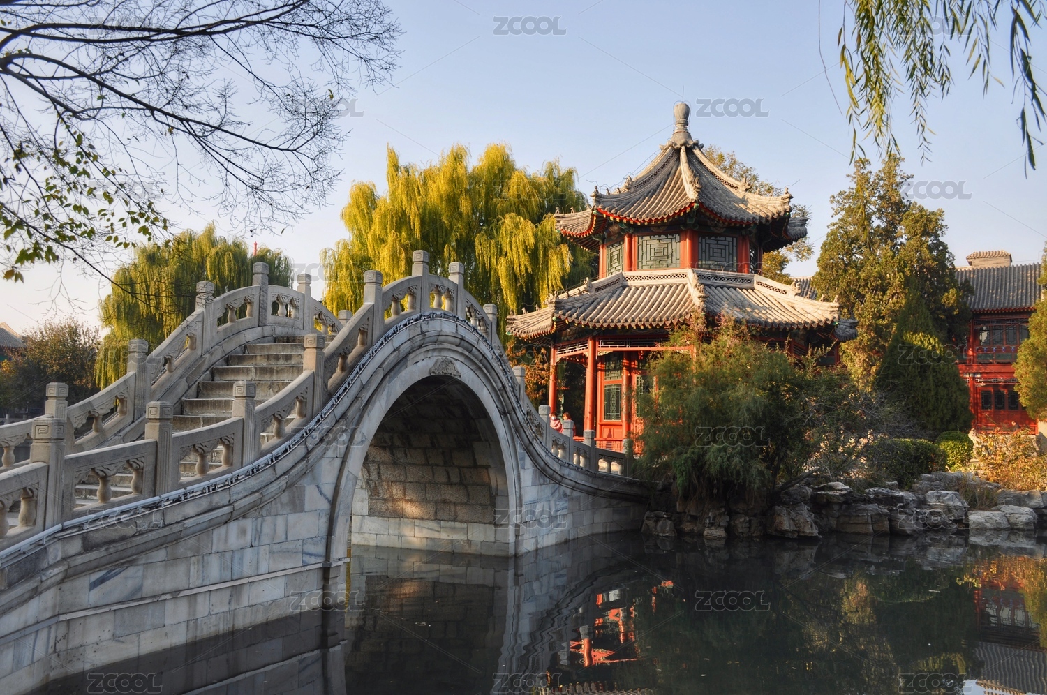 中国北京紫竹院河上石拱桥